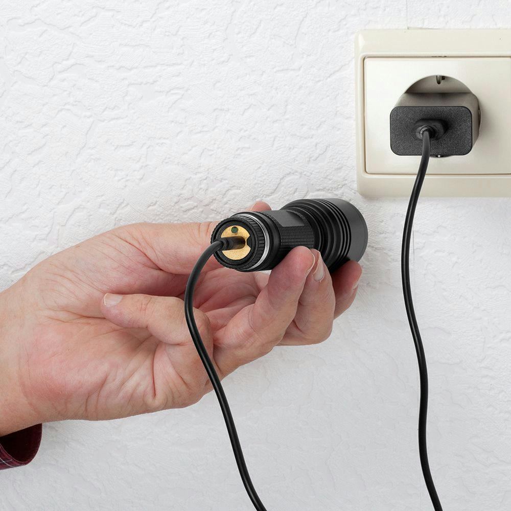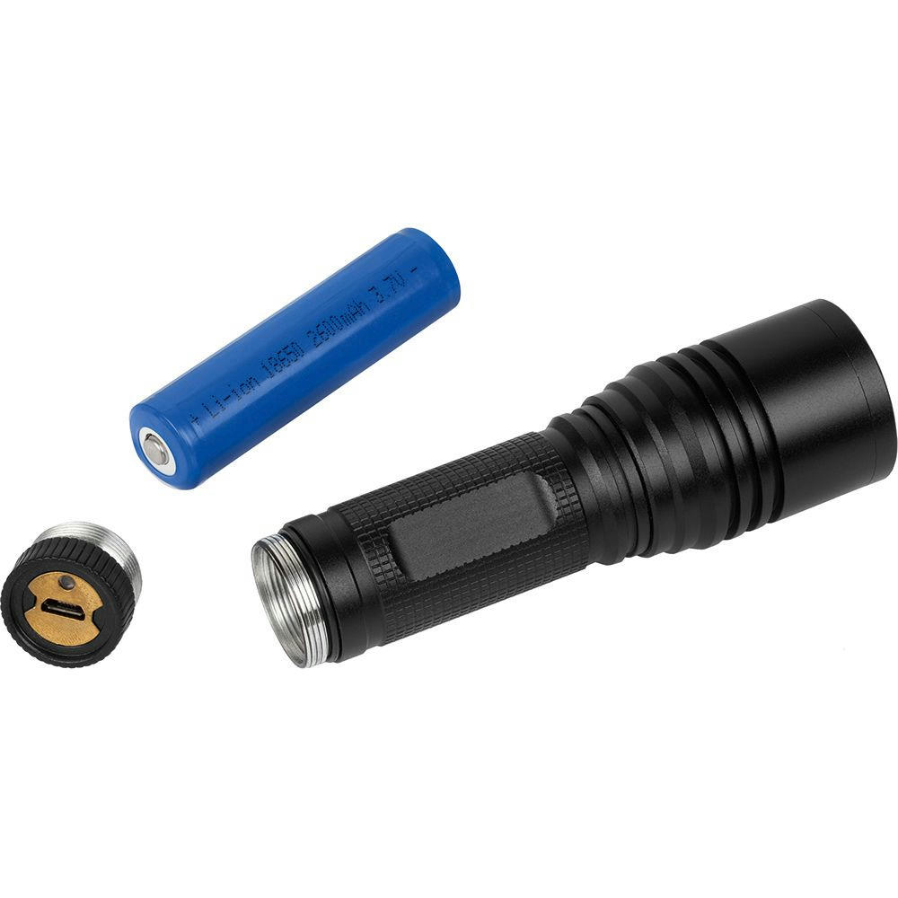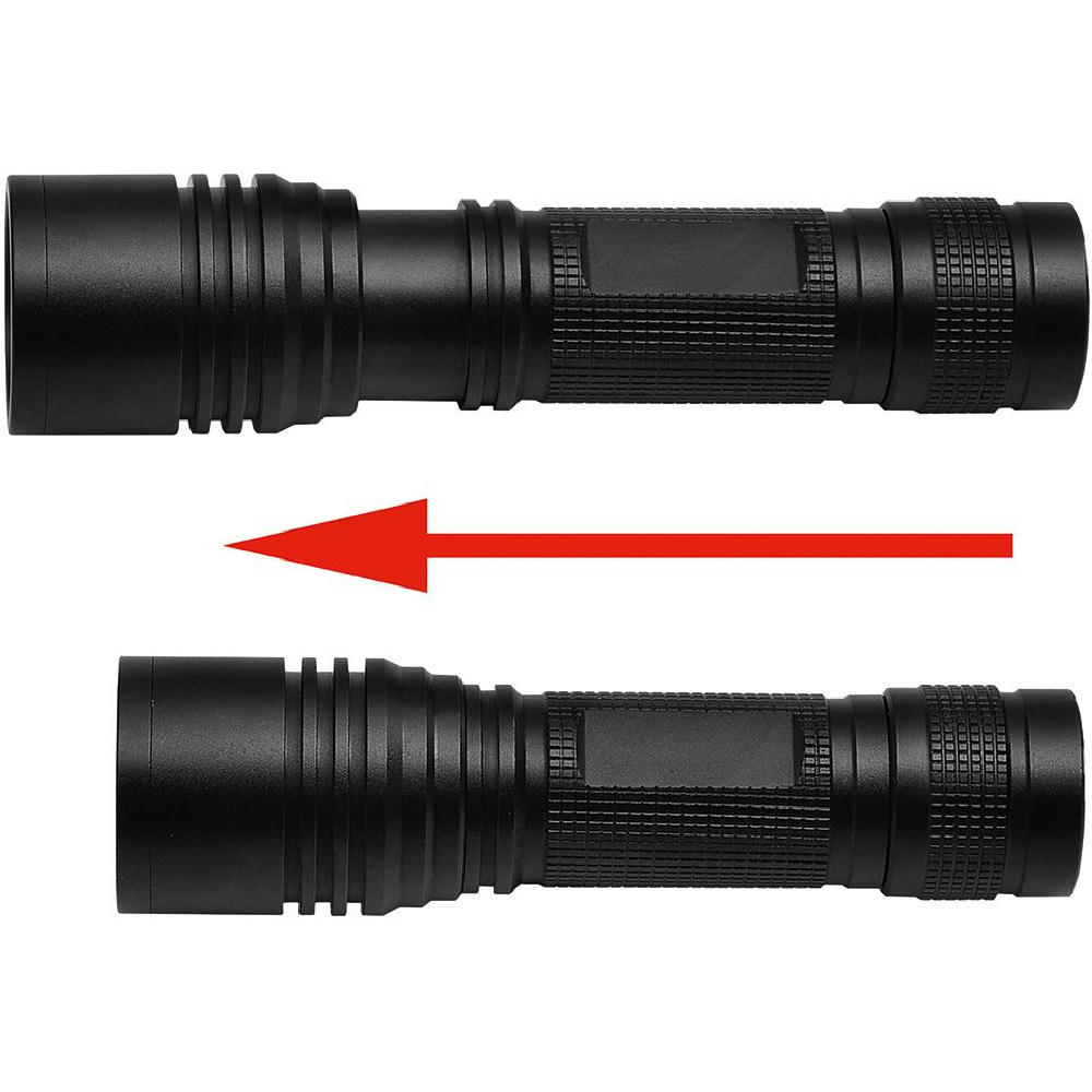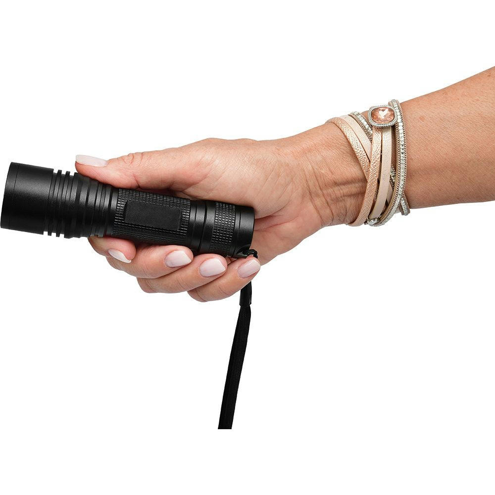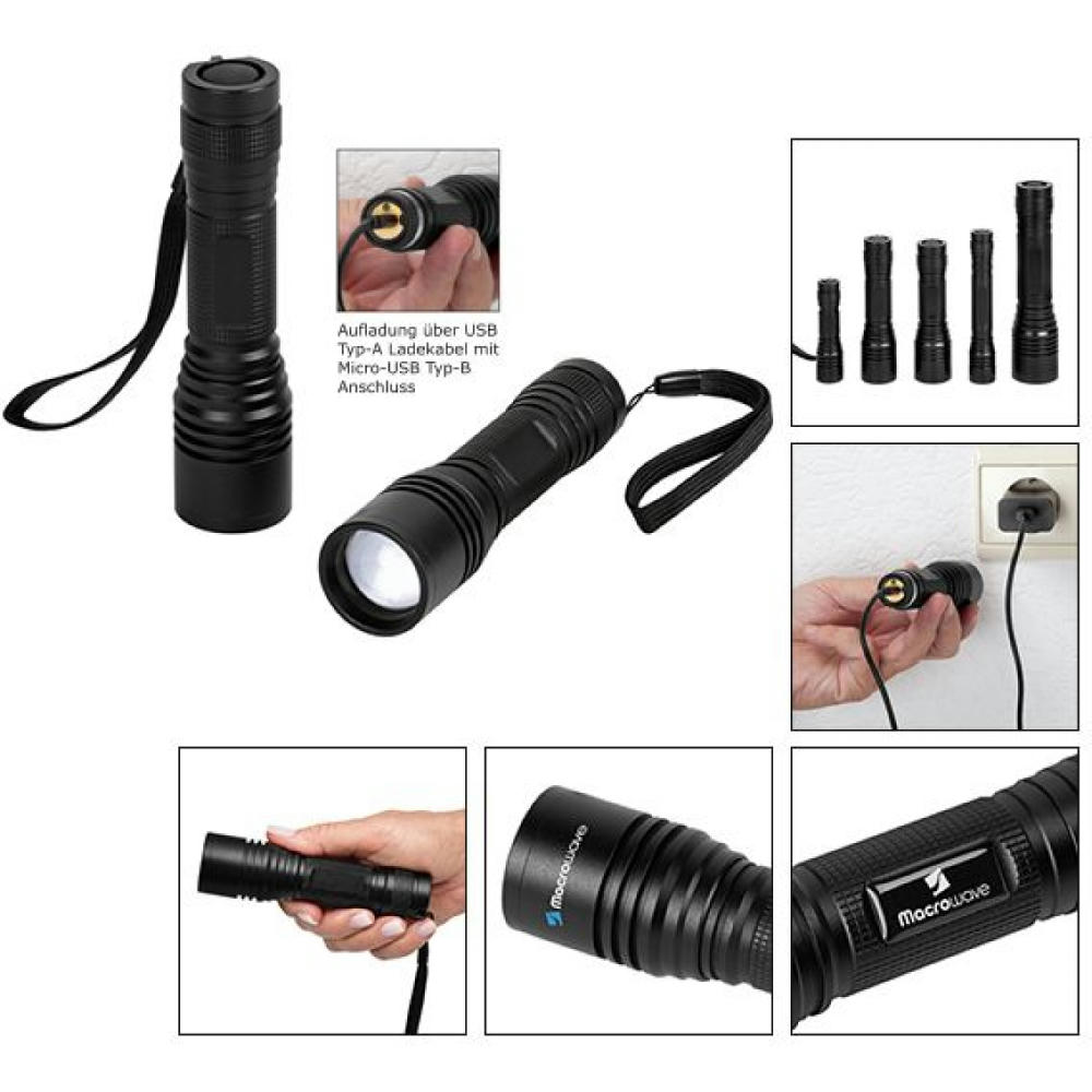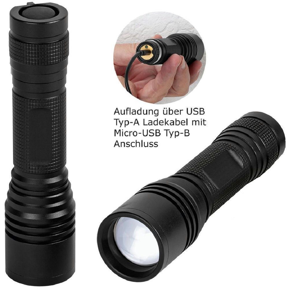 Aufladbare LED Taschenleuchte mit Fokussierung und Signallichtfunktion.