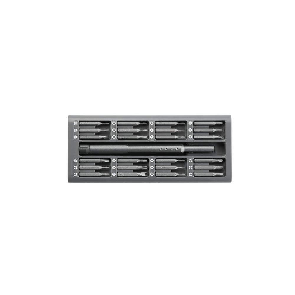 Präzisions-Bit-Set mit 24 Aufsätzen und magnetischem Schraubendreher-Schaft in hochwertiger Metallbox.