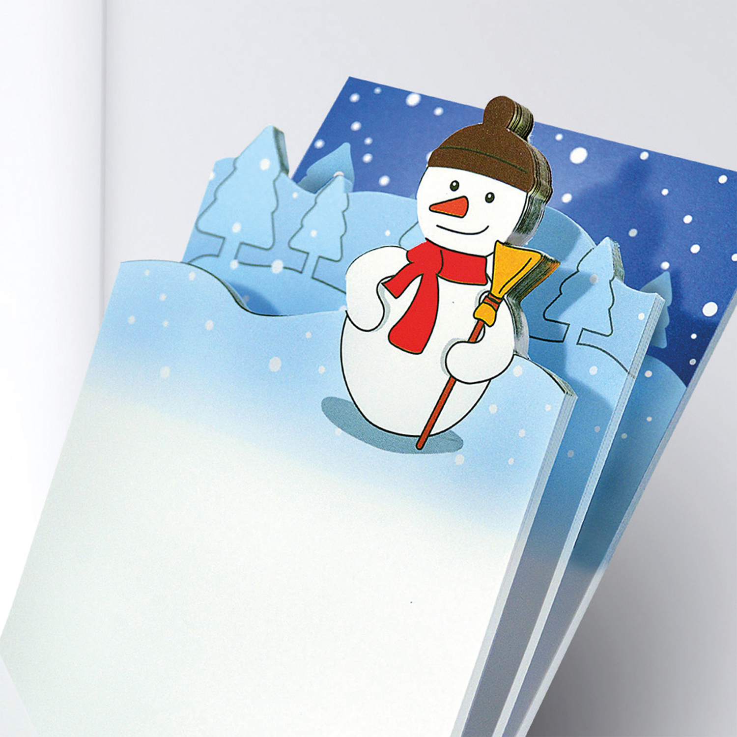 Durch die Formstanzung des mittleren und des obersten Blocks und das perfekt aufeinander abgestimmte Druckmotiv ergibt sich ein beeindruckender 3D-Effekt. Material Block: Offsetpapier 90 g / m2 matt, holzfrei, weiß. Material Bodenblatt: 300 g / m2 Offsetkarton, weiß. Farbe: projektabhängig. Maße: 8,5 x 16 cm à ca. 60 Blatt. Das Trio-Pad ist auch mit Kartonumschlag erhältlich. Preis ab 500 St. inkl. 4c-Druck.