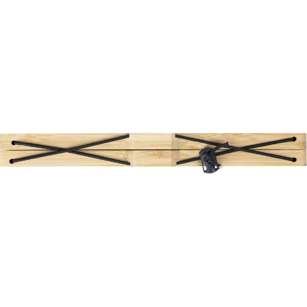 Material: naturbelassenes Bambus, Edelstahl. Maße: 29 x 9,3 x 3,1 cm (geschlossen), 29 x 18,6 x 1,55 cm (geöffnet).