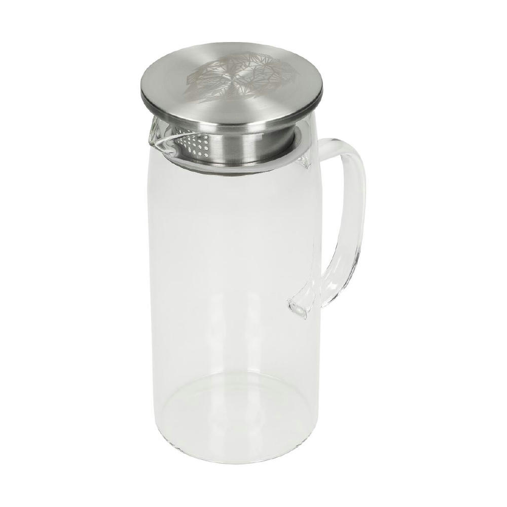 Karaffe aus Borosilikatglas mit Edelstahl- und Silikonelementen. Mit 1 l Füllvolumen ideal für Wasser, Saft oder Eistee. Durchdachtes Design für einfache Handhabung und leichte Reinigung. Stilvoll, funktional und perfekt für Alltag oder Büro.