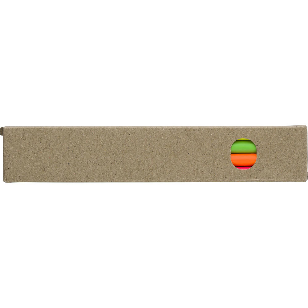 Buntstifte-Set mit 4 Farbstiften (gelb, orange, rosa und grün) in Kartonbox.
