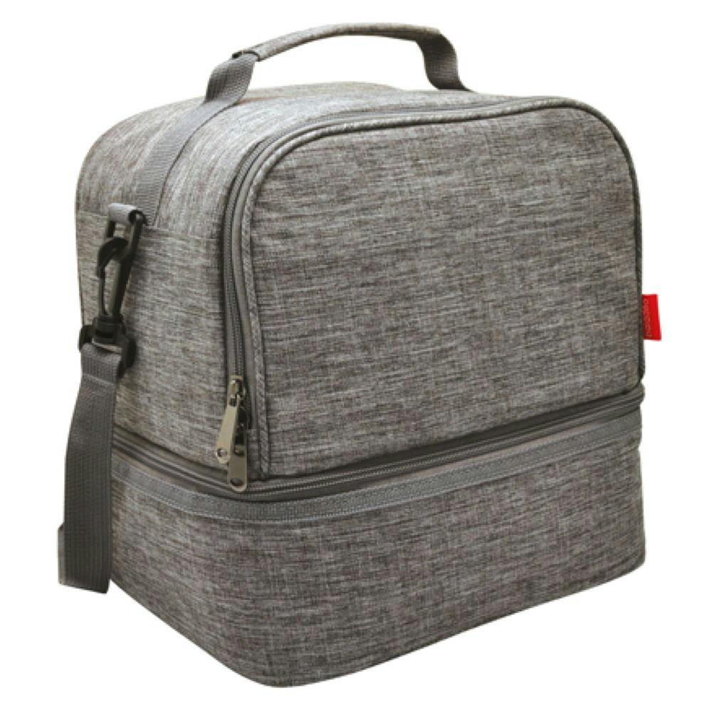 Thermotasche mit doppeltem Fach, isolierende 3 mm dicke Auskleidung, Schultergurt, Möglichkeit eine Visitenkarte einzufügen, verstärkte und gepolsterte Griffe für einen besseren Halt, Reißverschluss.