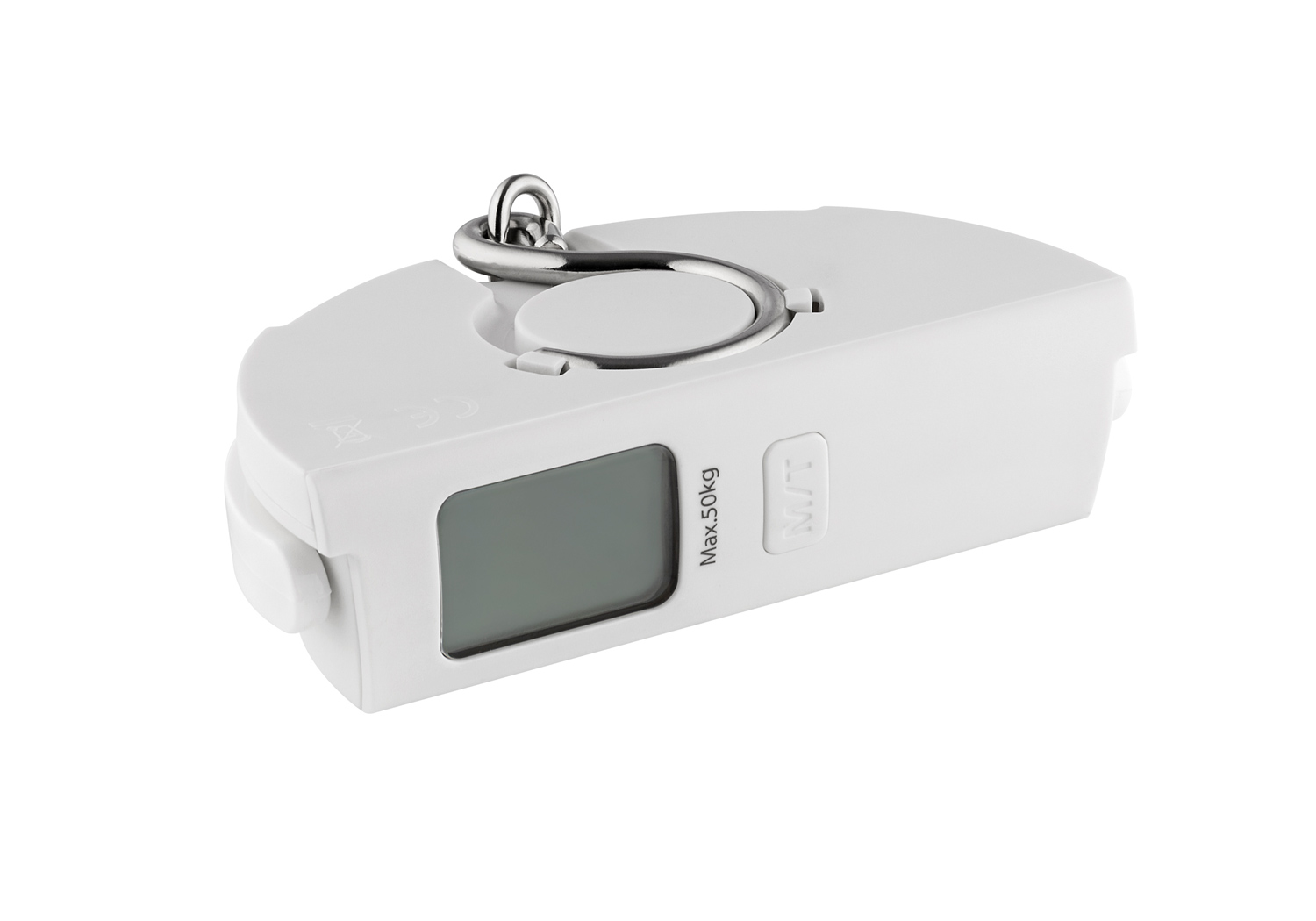 Innovative Travelwaage mit umweltfreundlicher Dynamofunktion (d.h. immer einsatzbereit ohne Batterien), sehr kompakt, mit Digitaldisplay und Maxwertfixierung.
