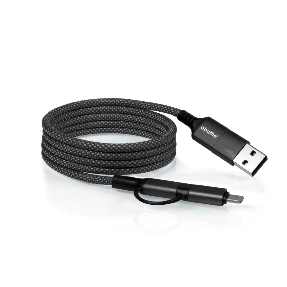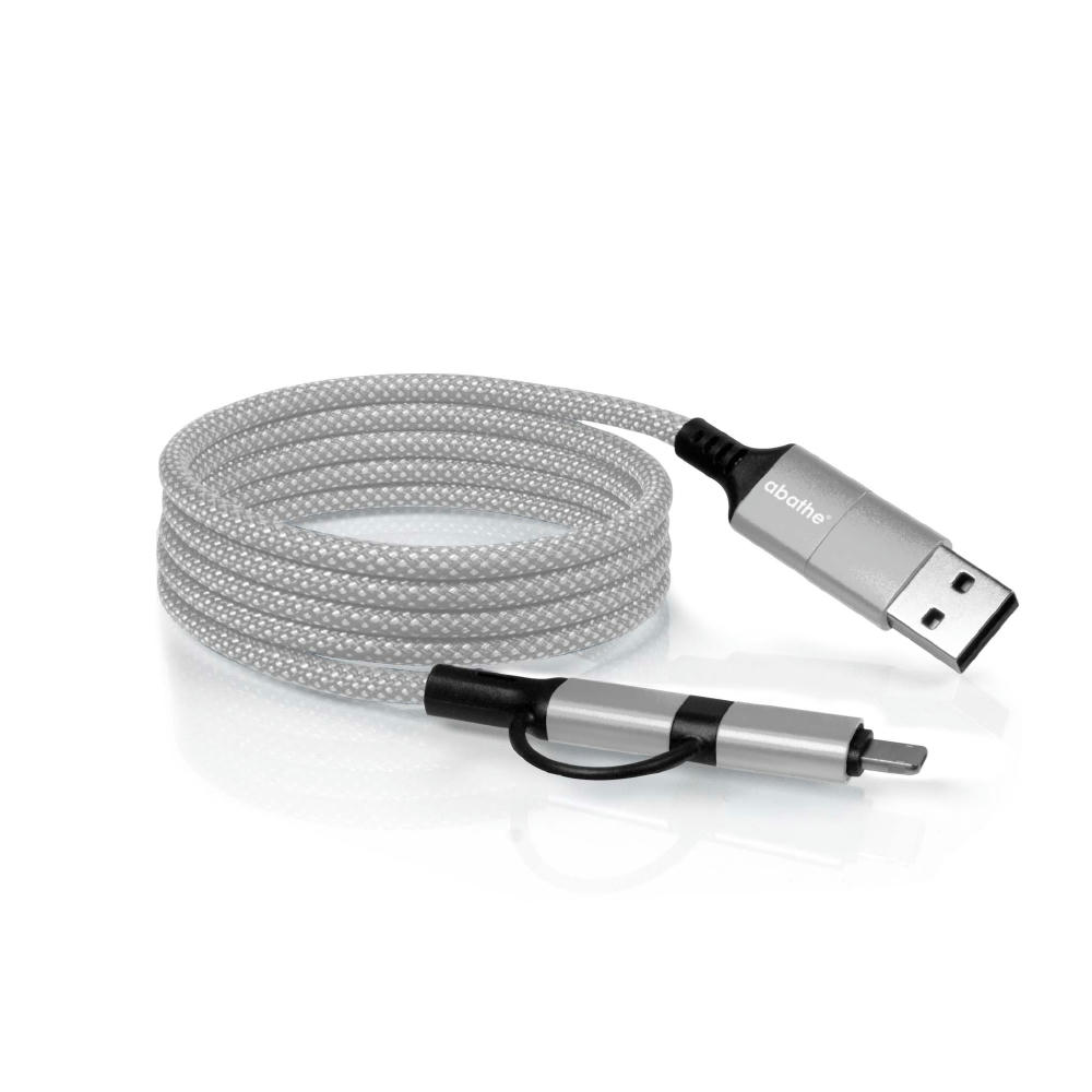 Magnetisches Multi-Schnellladekabel (1,00 m) mit USB-A, Lightning- und USB-C-Anschluss. Kompatibel mit allen neueren Geräten (ohne MFI-Lizenz). Dank der integrierten Magneten entlang des MagCable bleibt dieses stets ordentlich und verwicklungsfrei.
