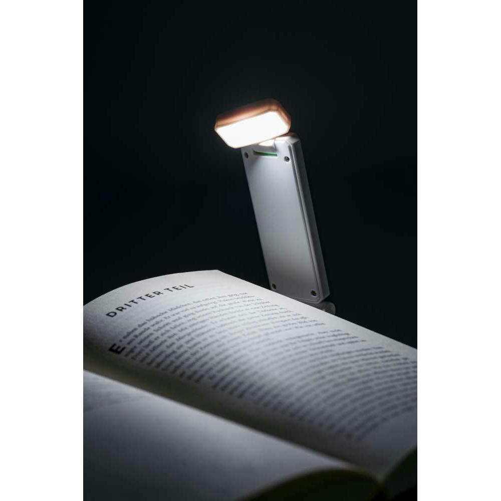 Leseleuchte im Hosentaschenformat. 3 Lichttemperaturen: 3000/4000/6500K, 5 Dimmstufen, Timerfunktion, Batterie: 500mAh, Ladezeit: 1-2 Stunden, Leuchtdauer: 10-100 Stunden.