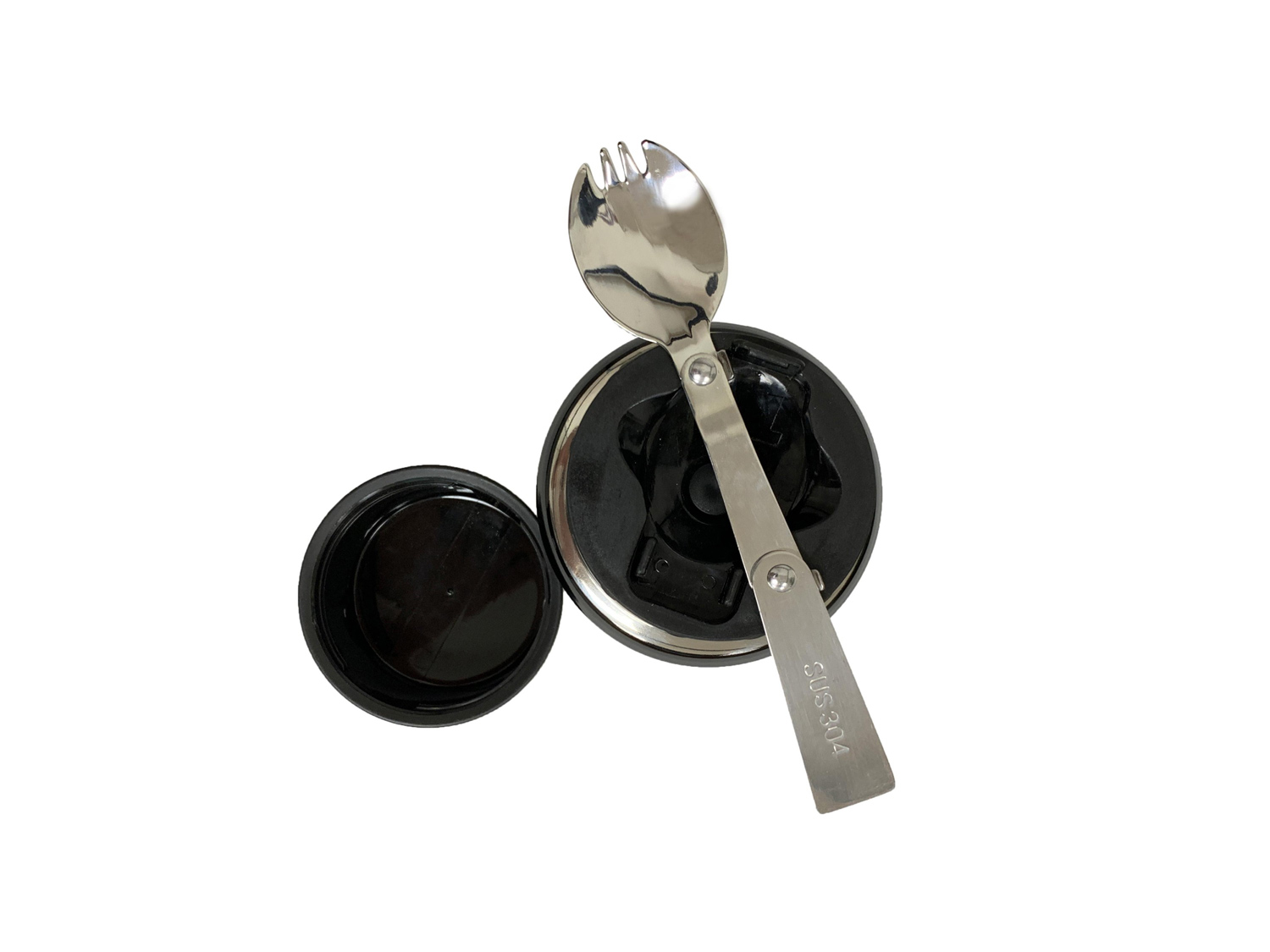 Der doppelwandige und vakuumisolierte Food-Container aus Edelstahl hält die Temperatur im Inneren konstant, sodass Warmes warm und Kaltes kalt bleibt. Der Lunchpot ist von Außen pulverbeschichtet; im Inneren des Deckels befindet sich ein faltbarer Löffel. Der Lunchpot ist auslaufsicher, BPA-frei und spülmaschinengeeignet (Deckel nicht).