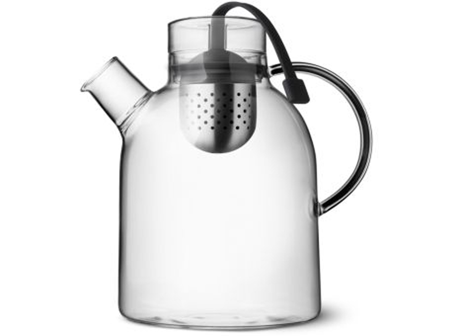 In der Mitte der Kanne ist ein Tee-Ei platziert. Wenn der Tee lange genug gezogen hat, zieht man das Ei einfach an seiner Silikonschnur heraus.