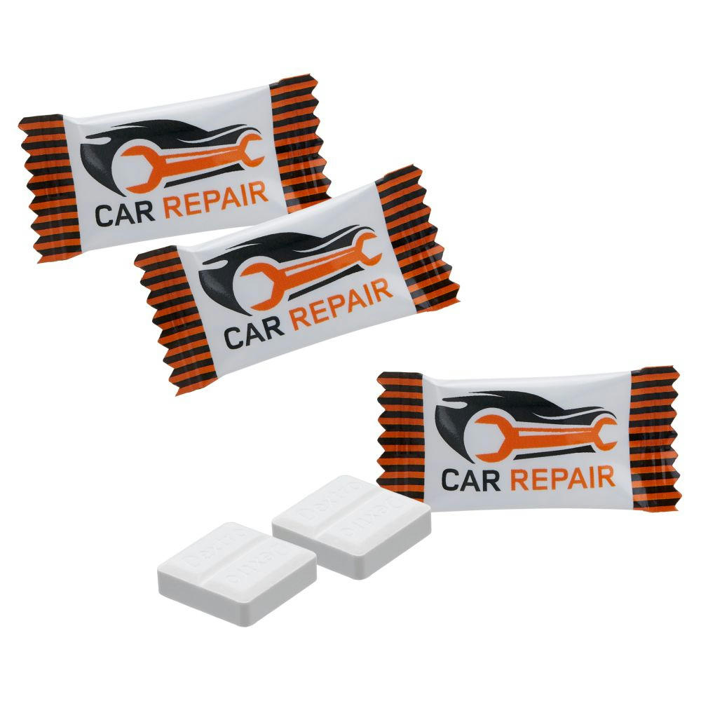 Traubenzucker in transparentem alternativ glänzend- oder matt-kaschiertem weißem Flowpack einzeln verpackt. Inhalt: 1 Stück à  ca. 1,5 g. Maße: ca. 4,5 x 2,4 cm. Haltbarkeit: ca. 18 Monate.