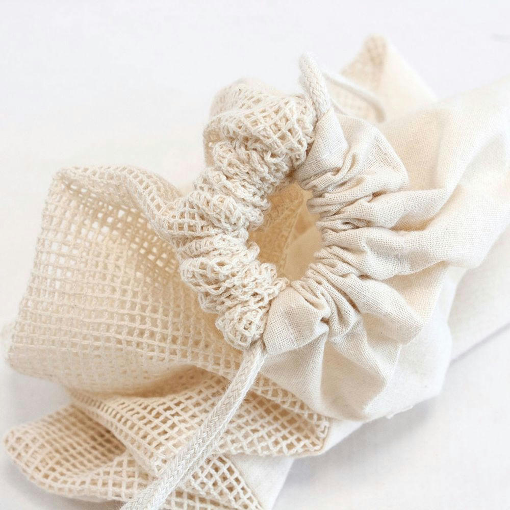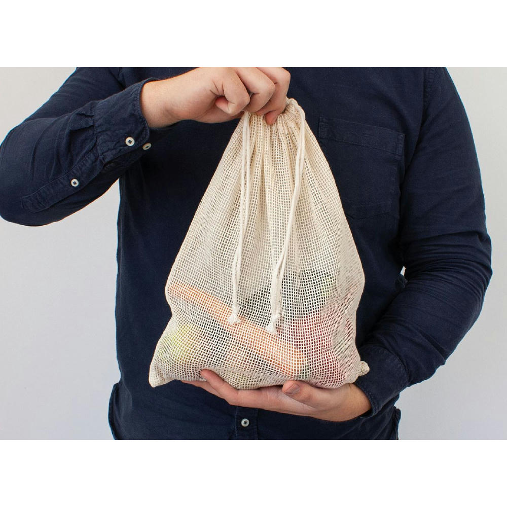 Zugbeutel aus 100 % OEKO-TEX® Baumwolle, 140 g/m². Er ist mit einem robustem, langlebigen Baumwoll-Netz, mit Tara-Innendruck (39 Gramm) versehen.
