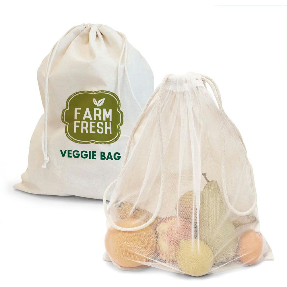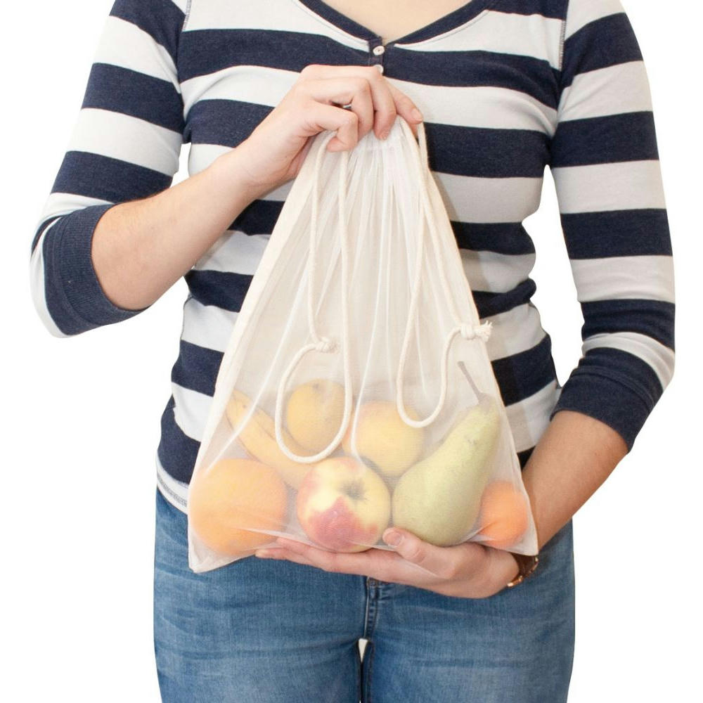 Zugbeutel aus zwei Materialien, auf der einen Seite 100 % Öko-Tex-Baumwolle auf der anderen Seite mit Nylon-Netz.