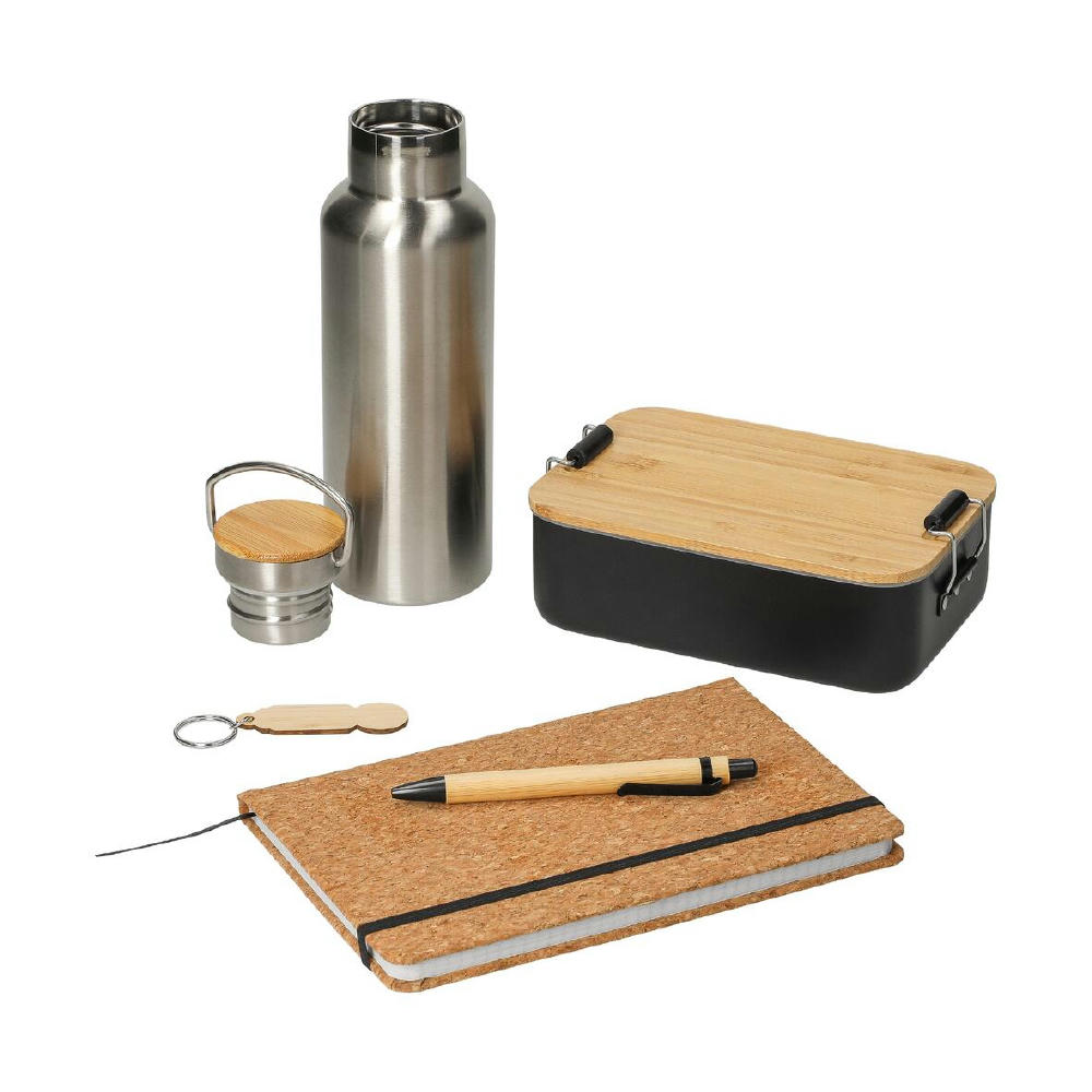 Das Onboarding-Set 2 ist die perfekte Begrüßung für neue Teammitglieder oder Kunden. Es enthält eine stilvolle Auswahl aus unserem Sortiment: die Vorratsdose „Bamboo“, das Notizbuch „Kork“, den Kugelschreiber „Shirakami“, die Vakuum-Flasche „Cascada“ und den Einkaufswagenlöser „Bamboo“. Praktisch, nachhaltig und vielseitig – ein Set, das begeistert!