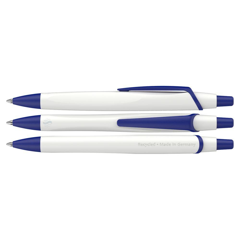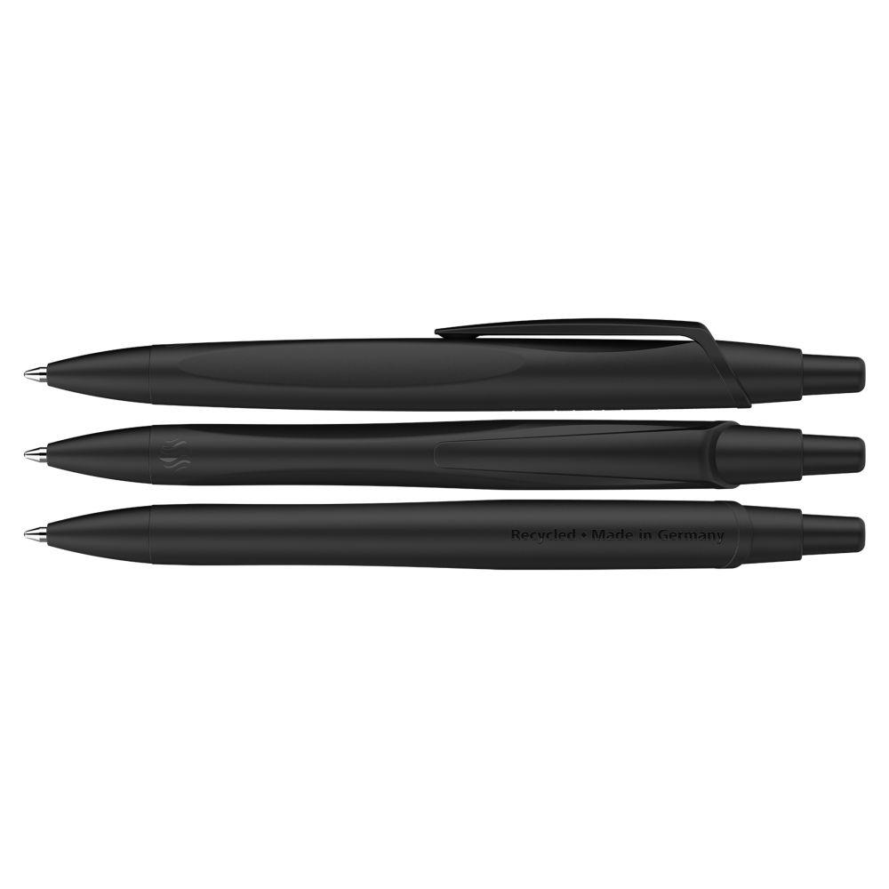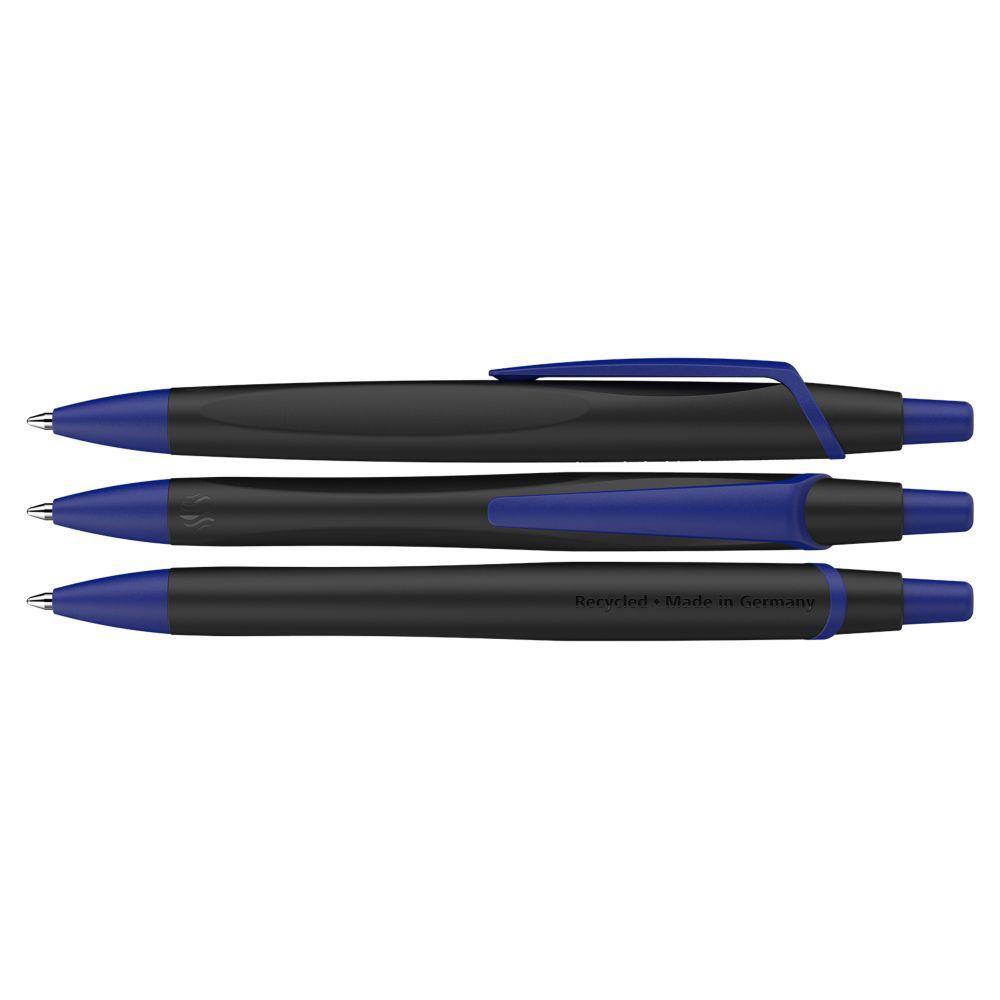 Erster Kugelschreiber, der mit dem weltweit bekanntesten Umweltzeichen "Blauer Engel" ausgezeichnet ist. Dynamisches Design mit elegant matt schimmernder Oberfläche. Umwelt- und ressourcenschonend mit einem *Gehäuse aus 92 % recyceltem Kunststoff hergestellt. Auswechselbare Großraummine Eco 725 M mit einem Gehäuse aus 95 % recyceltem Kunststoff. Produkt mit finanziellem Klimabeitrag: Kompensation in Höhe der unvermeidbaren Emissionen in ein zertifiziertes Klimaschutzprojekt. Gehäuse: schwarz/blau. Schreibfarbe: blau.