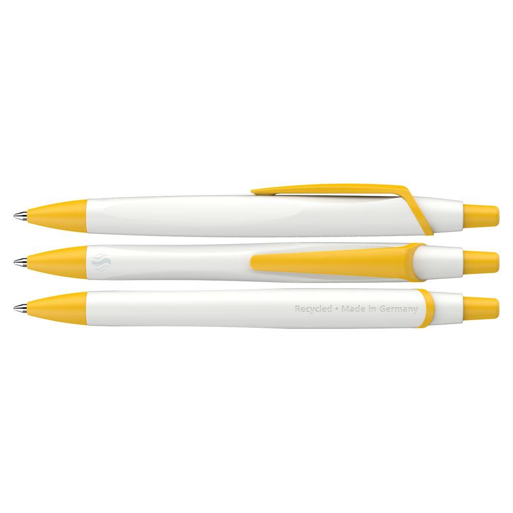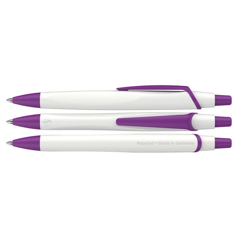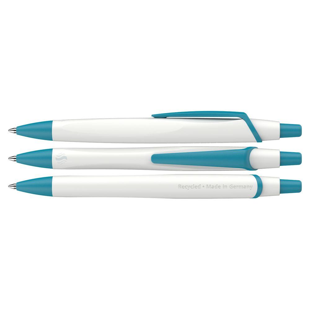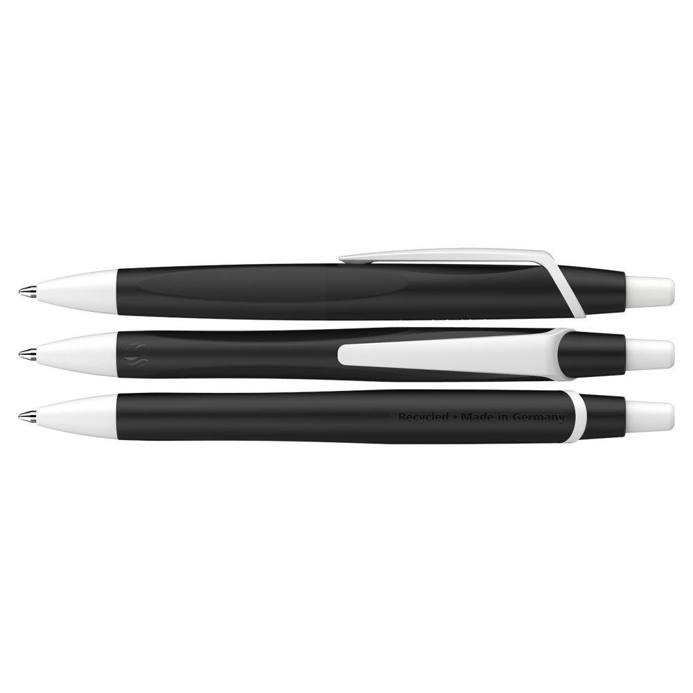 Erster Kugelschreiber, der mit dem weltweit bekanntesten Umweltzeichen "Blauer Engel" ausgezeichnet ist. Dynamisches Design mit elegant matt schimmernder Oberfläche. Umwelt- und ressourcenschonend mit einem *Gehäuse aus 92 % recyceltem Kunststoff hergestellt. Auswechselbare Großraummine Eco 725 M mit einem Gehäuse aus 95 % recyceltem Kunststoff. Produkt mit finanziellem Klimabeitrag: Kompensation in Höhe der unvermeidbaren Emissionen in ein zertifiziertes Klimaschutzprojekt. Gehäuse: schwarz/blau. Schreibfarbe: blau.