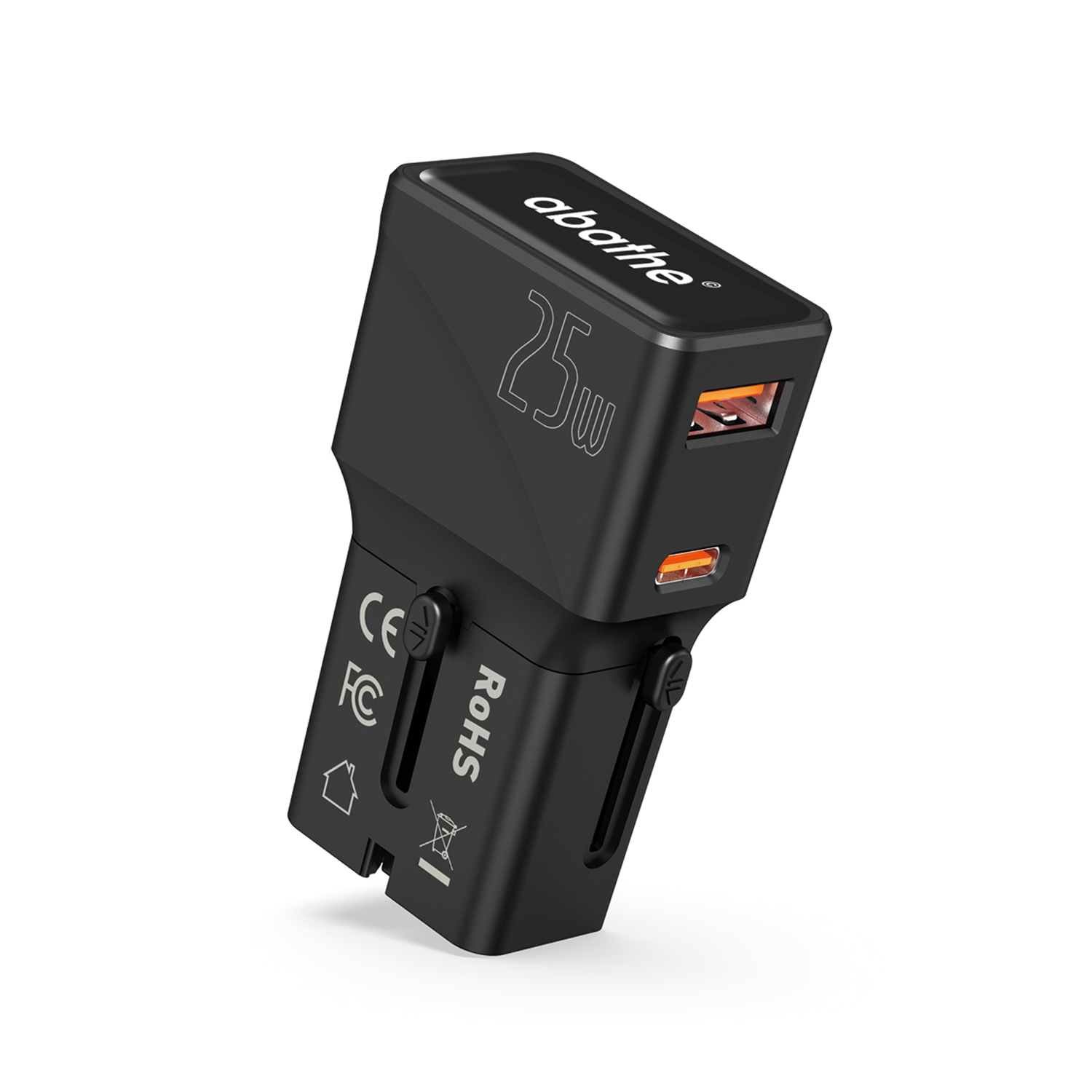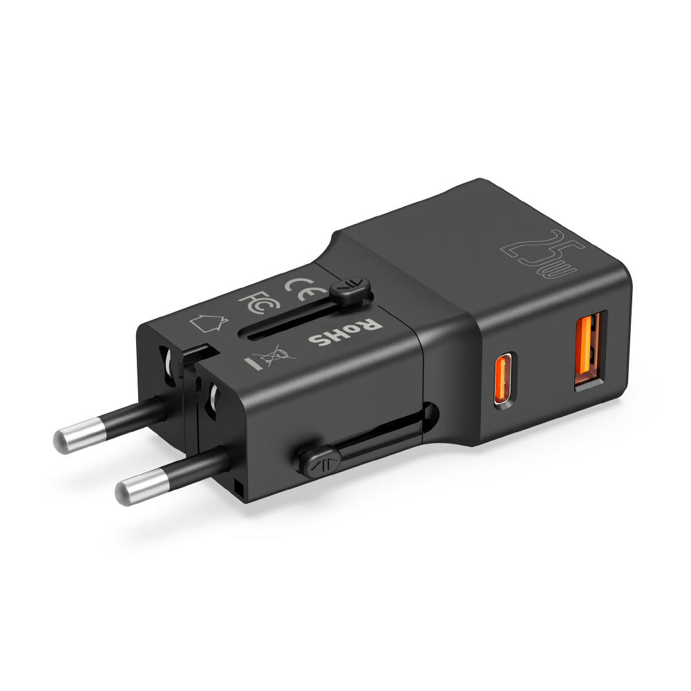 Dieser kompakte, weltweit einsetzbare Reiseadapter ist die perfekte Lösung für Reisende. Er ist einstellbar und kompatibel mit Steckdosen in über 200 Ländern. Dank Fast Charging (25W) Technologie und zwei USB-Anschlüssen können Sie mehrere Geräte gleichzeitig schnell und sicher aufladen. Ideal für Smartphones, Tablets, Laptops und andere USB-fähige Geräte. Kompakt, zuverlässig und unverzichtbar für Ihre Reisen!