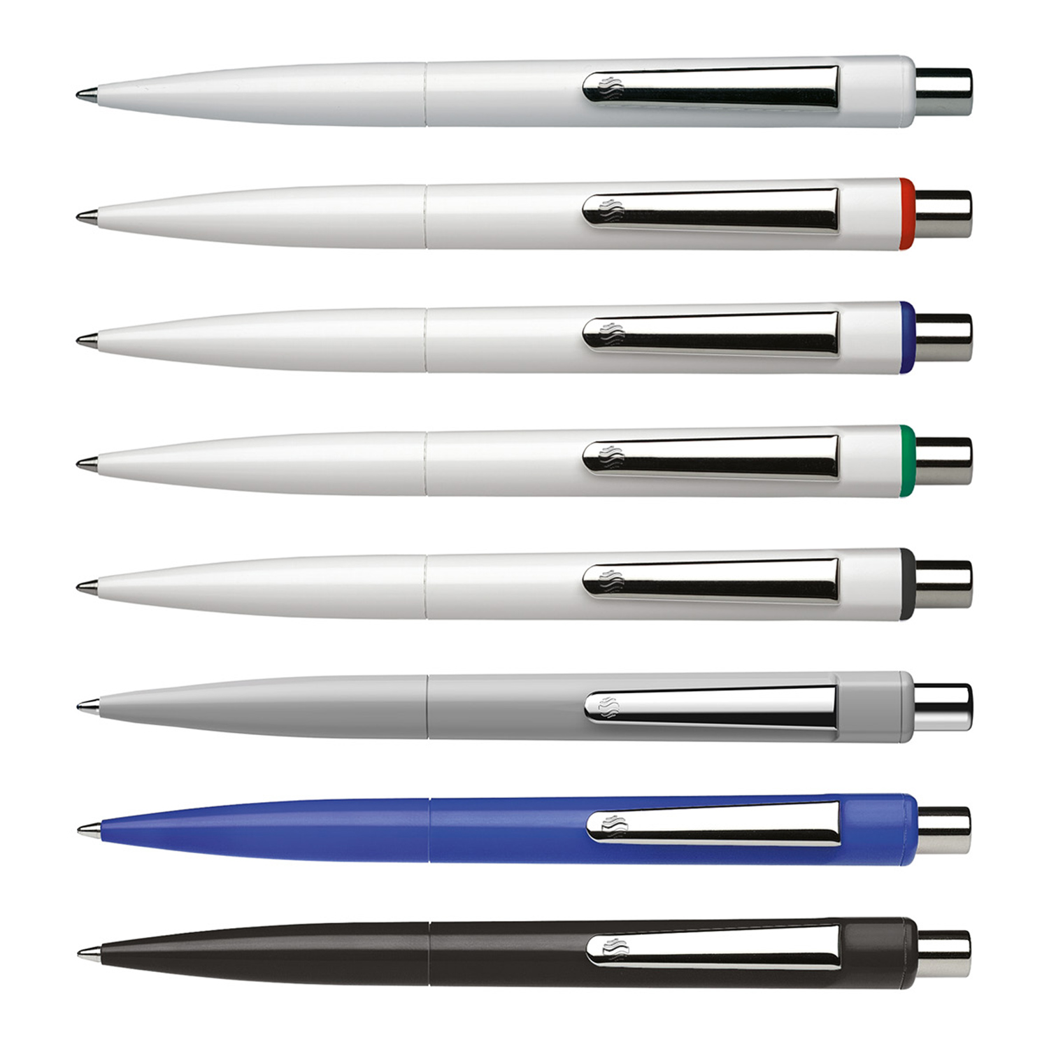 Klassischer Druckkugelschreiber aus opakem Kunststoff mit glänzender Oberfläche. Clip und Druckknopf aus Metall. Ausgestattet mit SCHNEIDER-Mine 774 M.