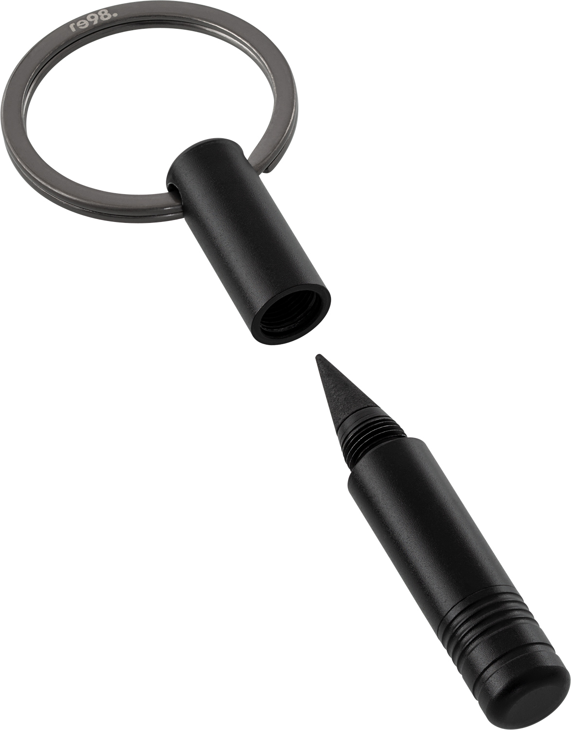 Ausgestattet mit einem magnetischen Bit und einer radierbaren Endlos-Schreibspitze. Der Bit ist aus besonders hartem Stahl mit einer Rockwell Härte von 55 bis 60 HRC. Sowohl ein Schlitz- als auch ein Kreuzschlitzaufsatz stehen zur Verfügung. Hergestellt aus recyceltem Aluminium, liegt der schwarz eloxierte Schlüsselanhänger leicht in der Hand. Veredelbar mit Lasergravur. Inkl. Geschenkverpackung.