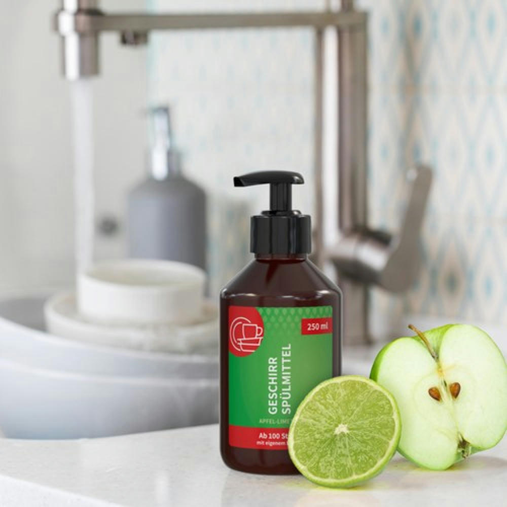 * Komplexes Tensid-System, biologisch vollständig abbaubar * Mit nachwachsenden Rohstoffen * Gut abspülbar bei höchster Spülleistung * pH hautfreundlich und dermatologisch „Sehr gut“ getestet * Sparsam im Gebrauch: 3 ml sind ausreichend für 10 l Wasser. * Weitere Füllungen wie Handbalsam/ Desinfektion, Duschgel, Handwaschpaste auf Anfrage