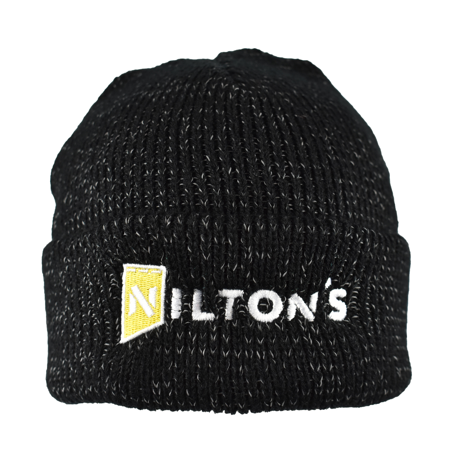 Beanie mit reflektierendem Garn.