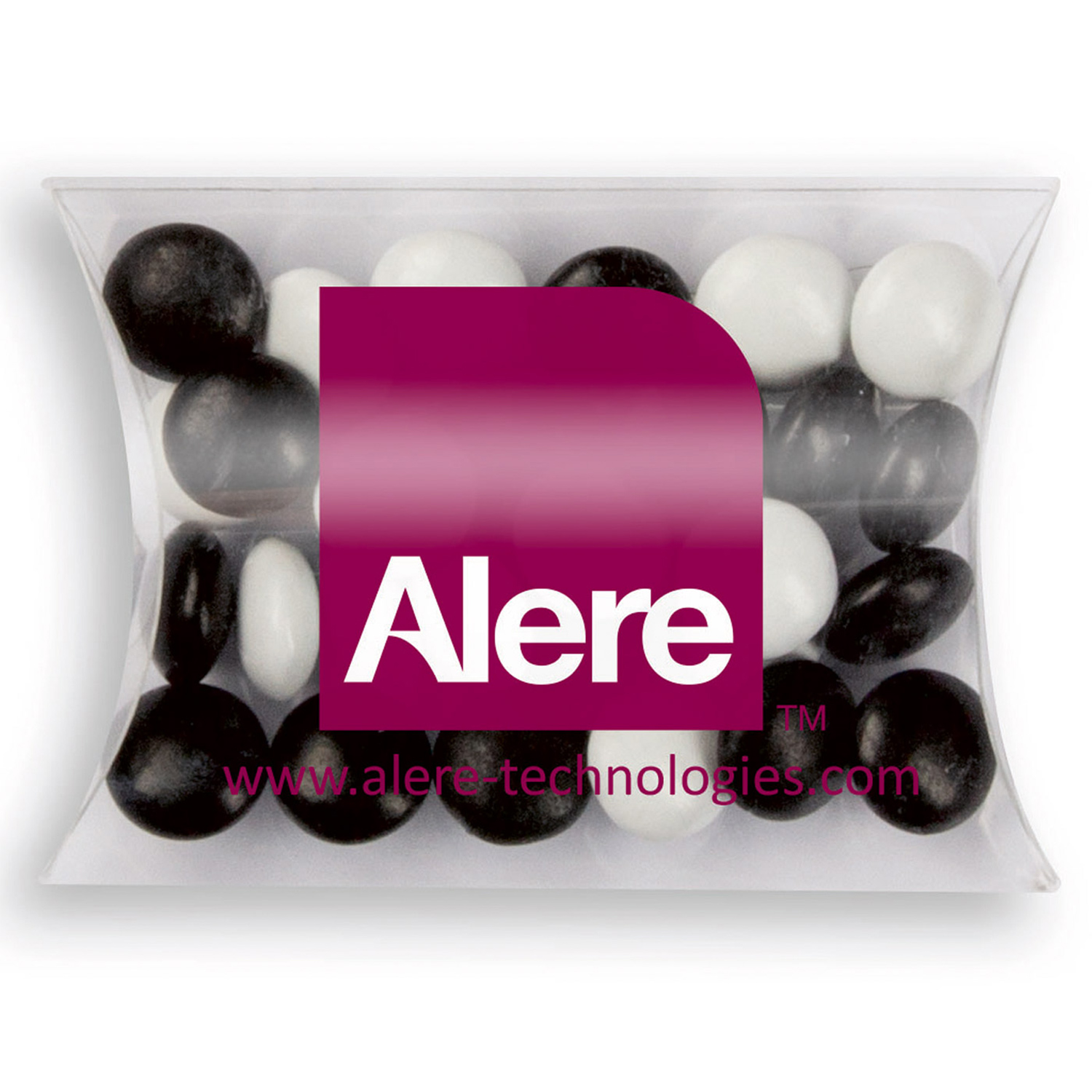 Mögliche Füllungen A: Ovale Mint-Pastillen zuckerfrei, Mint-Sternchen (VEGAN!), Traubenzucker-Herzchen Orange oder Zitrone (VEGAN!), Salmiak-Splitter, Mint-Pastillen zuckerfrei (VEGAN!), Schoko-Konfetti, Espresso-Linsen, Traubenzucker-Pastillen (VEGAN!) oder Schoko-Linsen farblich sortiert (verfügbare Farben: schwarz, grün, lila, türkis, blau, orange, weiß, pink, gelb und rot).