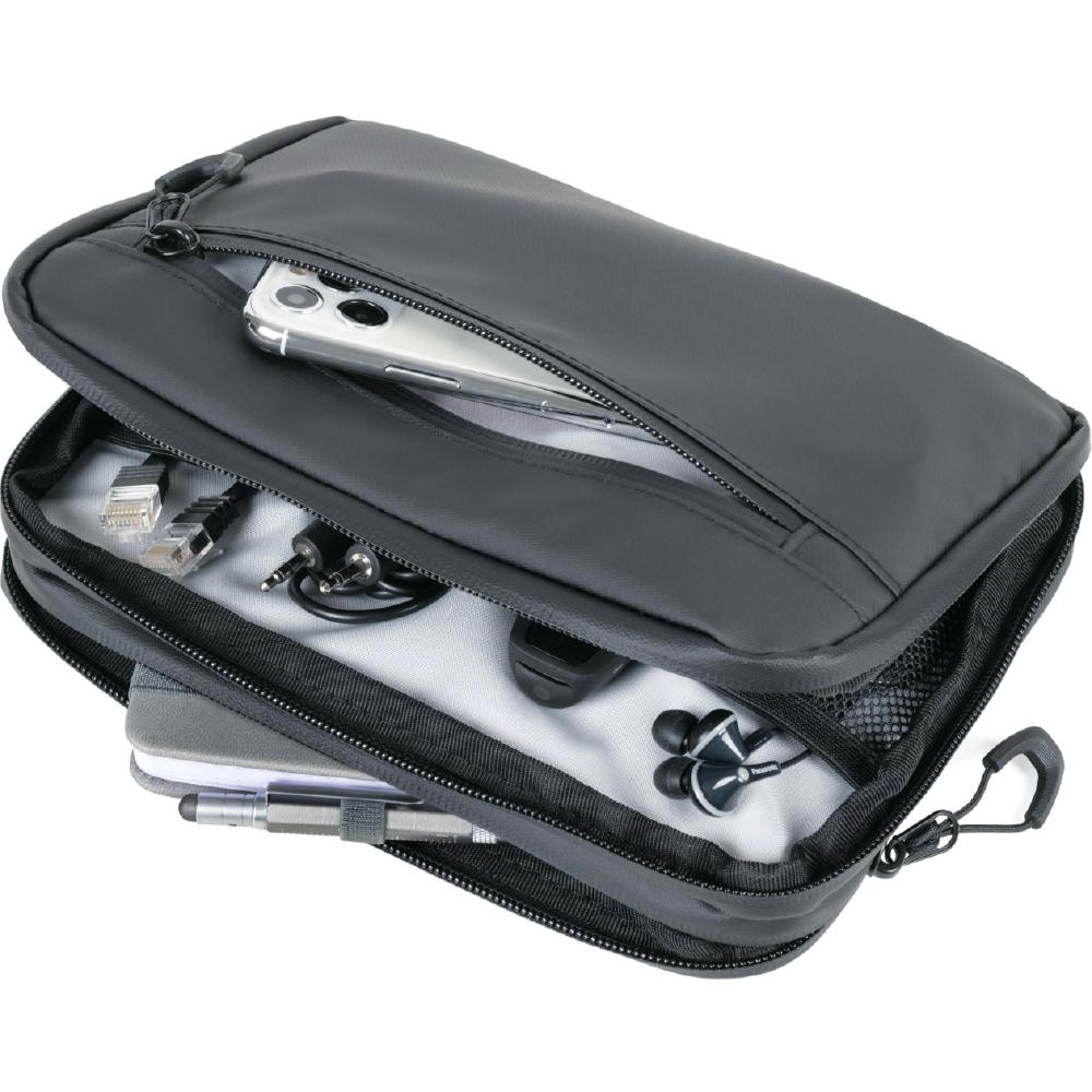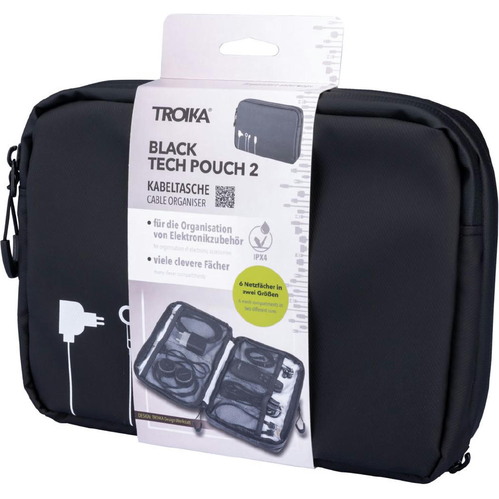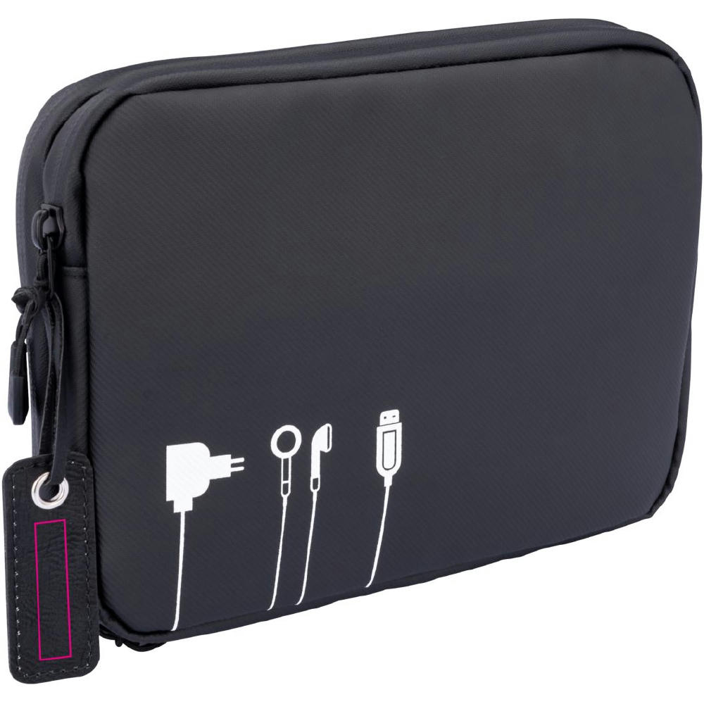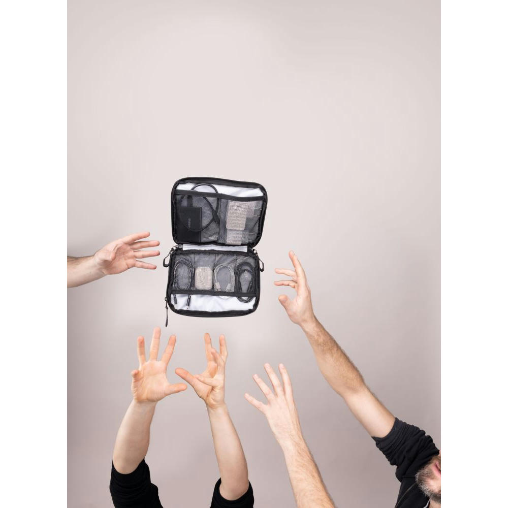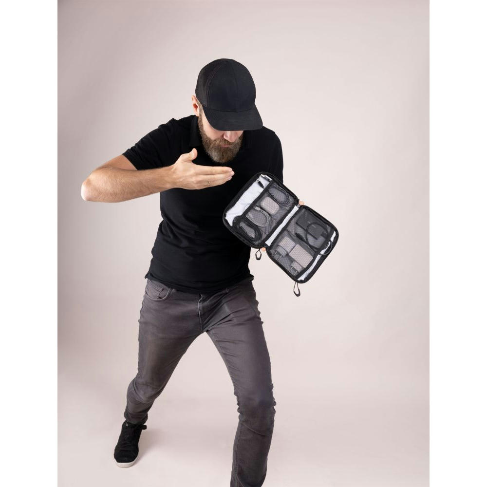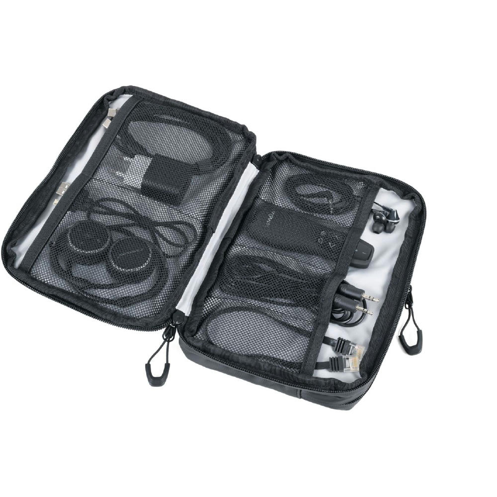 Kabeltasche für Elektronikzubehör, 3 Fächer mit wasserabweisenden Reißverschlüssen, großes Fach mit 2-Wege Reißverschluss und 6 Netzfächern in 2 verschiedenen Größen, Einschubfach, Seitentasche, Aufdruck: Adapter, Kopfhörer, Ladekabel, widerstandsfähiges Material, spritzwassergeschützt (Wasserdichtheitsgrad IPX4).