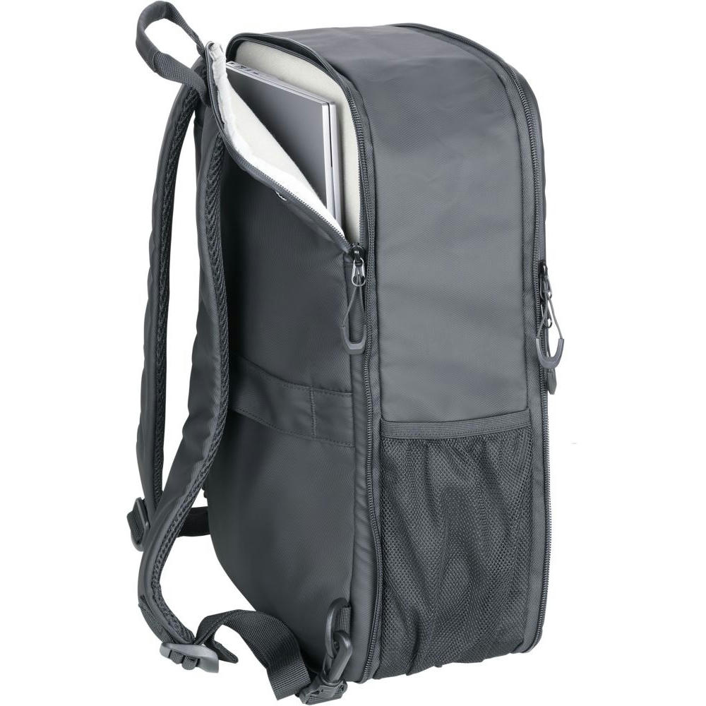 Bringt Ordnung in Ihre digitale Arbeits-und Freizeitwelt. Laptopfach bis zu 16". Durch zusätzlichen Reißverschluss erweiterbar von 6 auf 14 Liter. Fronttasche mit Diebstahlschutz und Karabiner. Verstärkter Standboden, Schlaufe zur Befestigung am Trolley, Tragegriff, versteckte Rucksackgurte.