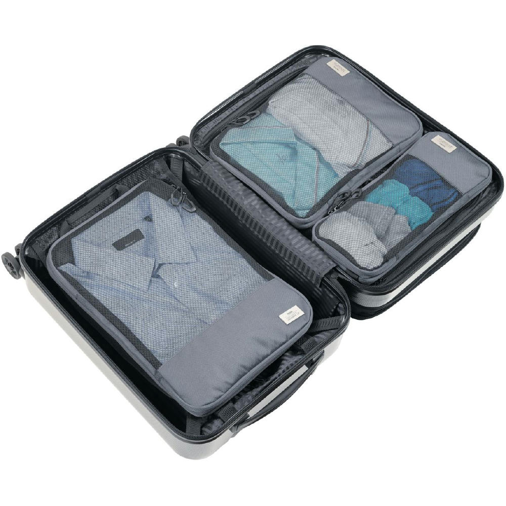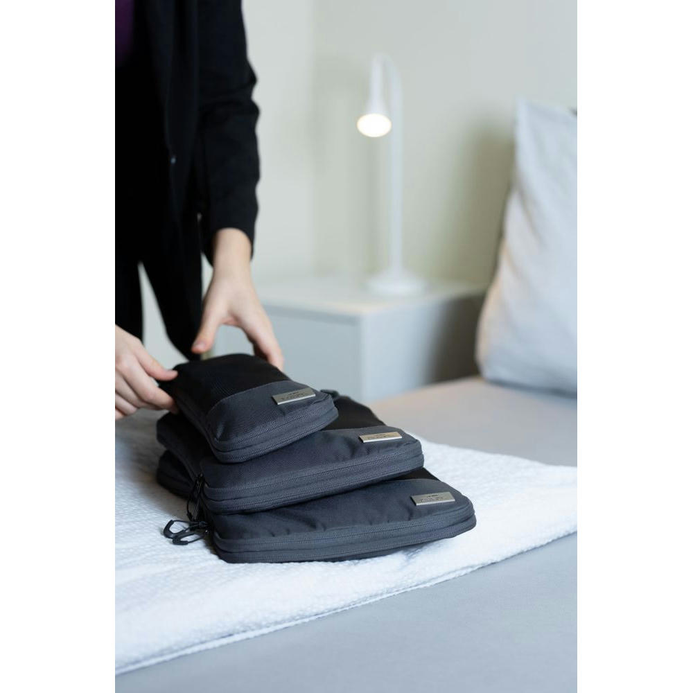 Dreiteilig für verschiedene Kleidungsstücke: Größe L für Hemden & Hosen, Größe M für Shirts und Größe S für Socken und Wäsche – für platzsparendes, geordnetes und knitterfreies Packen von Kleidung in Koffer & Rucksack. Durch Verschließen des Netzfach-Reißverschlusses wird der Inhalt vollständig komprimiert.