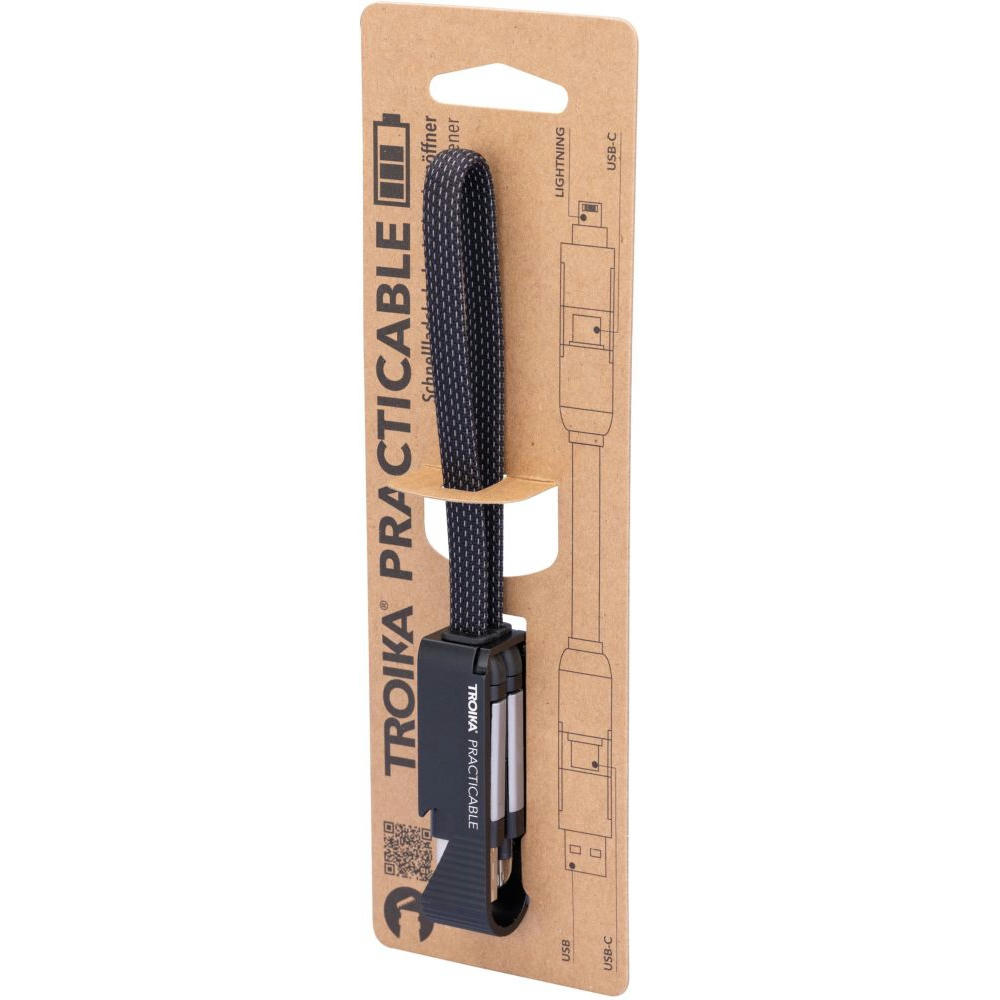 Schnellladekabel mit Flaschenöffner für unterwegs, USB/USB-C auf Lightning oder USB-C, mit Datenübertragungsfunktion, Kabel textilummantelt.