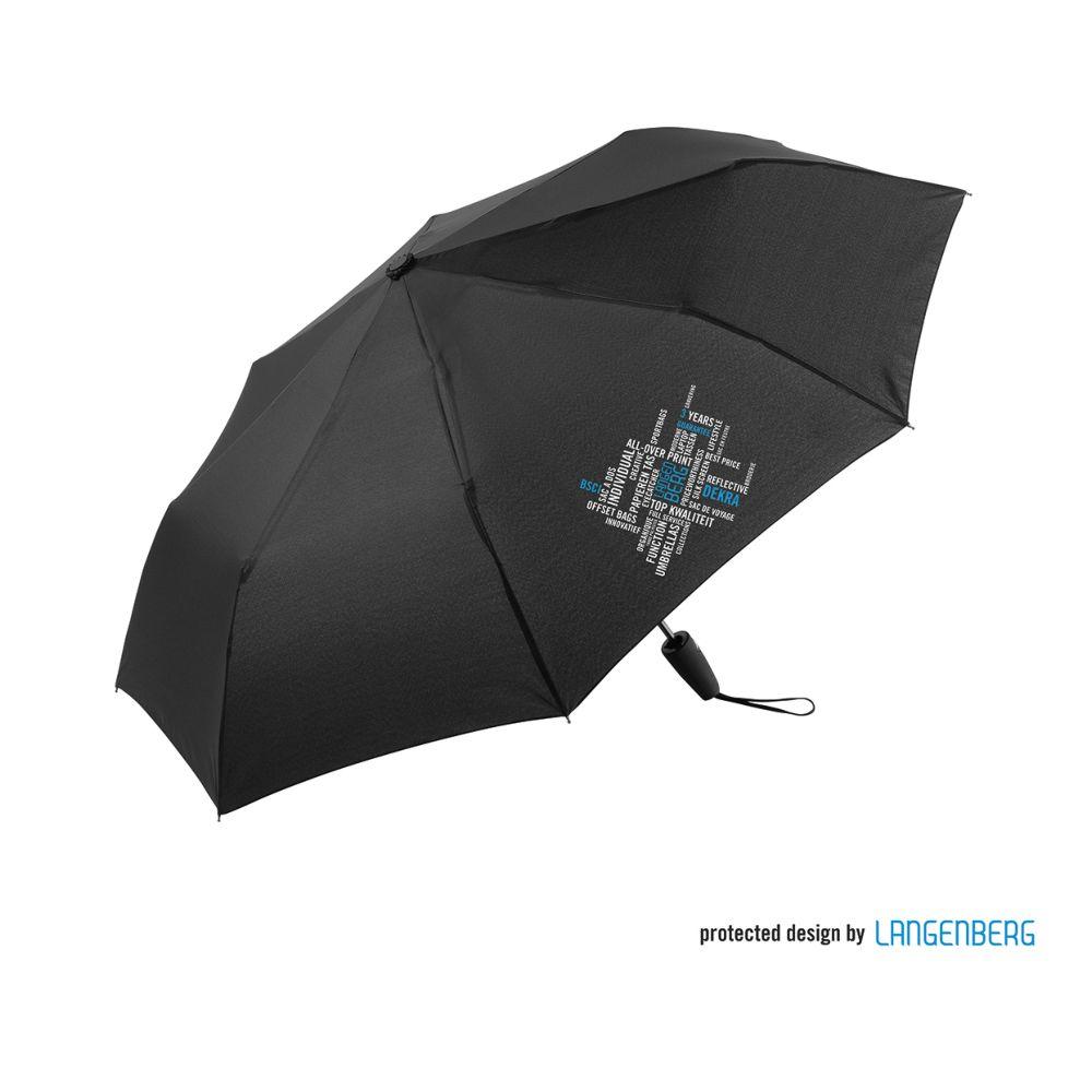Dieser Schirm mit einer Bespannung aus 190T Pongee bietet eine perfekte Mischung aus Funktionalität und Kompaktheit. Mit einem Durchmesser von ca. 98 cm schützt er zuverlässig vor Regen und Wind. Der Schirm lässt sich auf eine handliche Länge von ca. 33 cm falten und ist mit einer Automatik ausgestattet, die das Öffnen und Schließen besonders einfach macht. Die 8 Segmente sorgen für stabile Unterstützung, während die Windproof-Funktion auch bei stärkerem Wind für Sicherheit sorgt. Der gummierte Tragegriff mit einer farblich passenden Trageschlaufe ermöglicht einen sicheren Halt und komfortablen Transport.