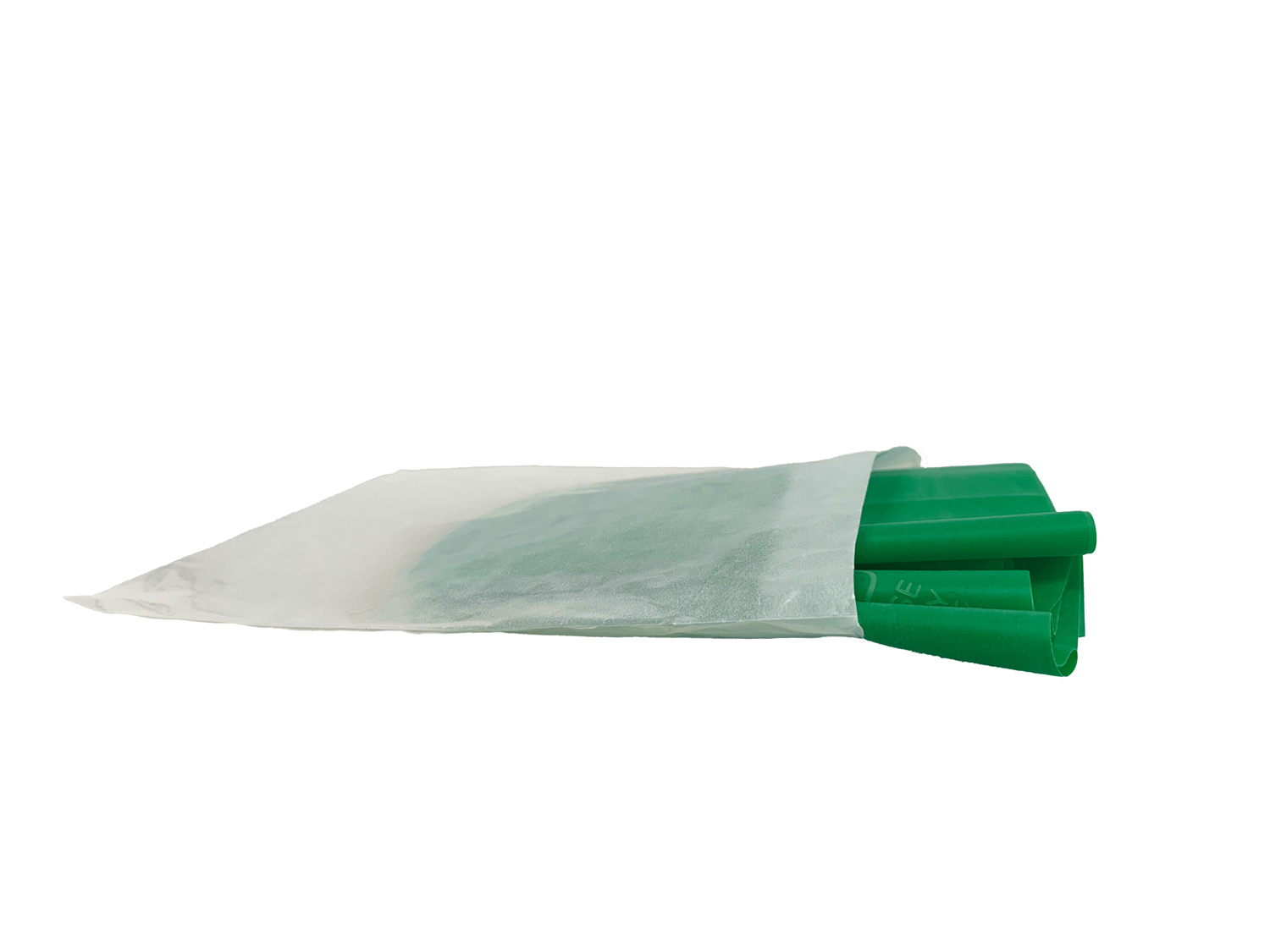 Theraband aus reinem Latex, ca. 1,5m lang, mit 16-seitiger, farbiger Übungsbroschüre, im biologisch abbaubaren Pergaminbeutel. Zugkraft: mittel.