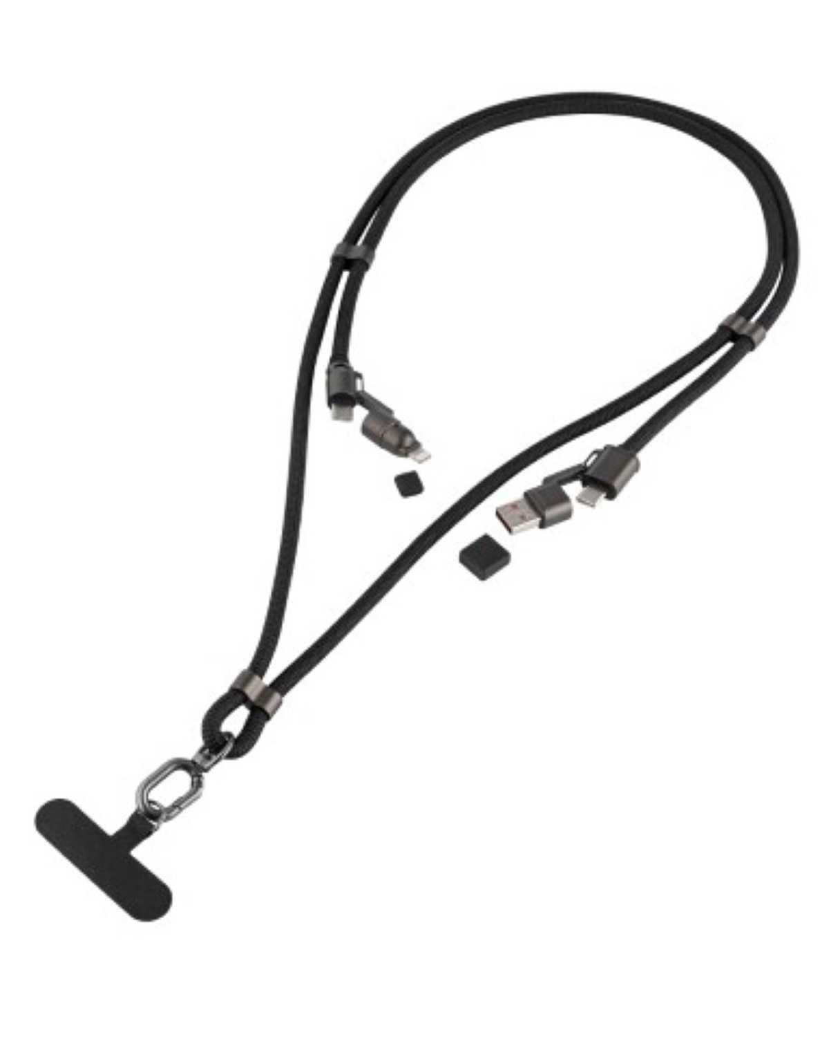 Tragbares Ladekabel, das sich bequem um den Hals tragen lässt und das Handy sicher befestigt. Mit 60 Watt Leistung, vielseitigen Anschlüssen und Datentransfer ist es die perfekte Lösung für den modernen Lifestyle unterwegs. Im recycelter CraftPaper Box.
