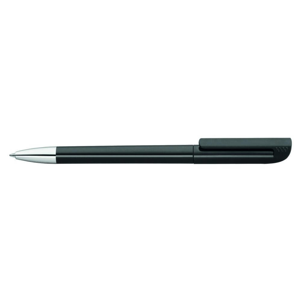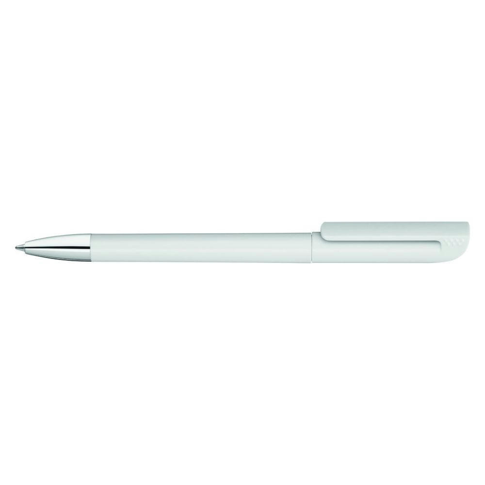Drehkugelschreiber mit gedeckt glänzendem Gehäuse, matter Clipoberfläche und Spitze glanzverchromt.