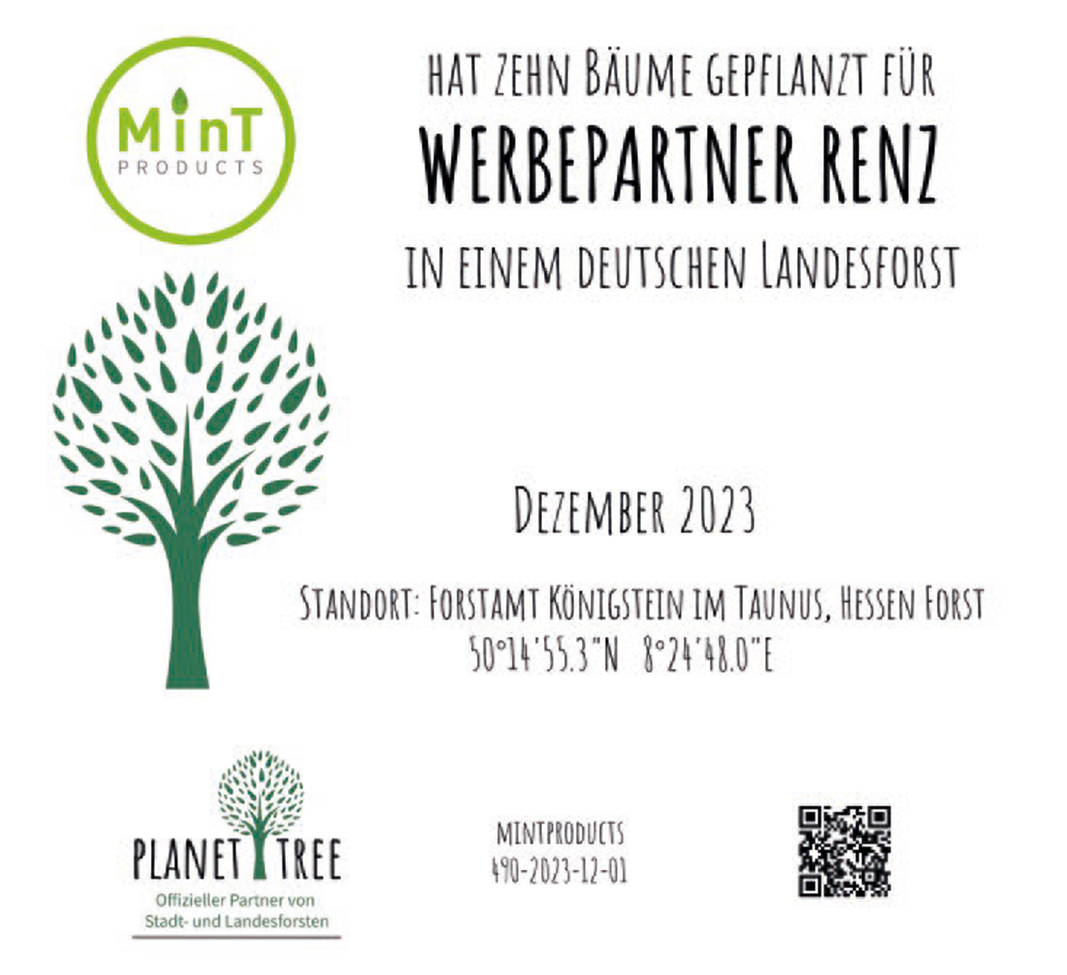 Zusammen mit unserem Lieferantenpartner MinT Products durften wir Teil der Aktion "1 Baum je Bestellung" werden