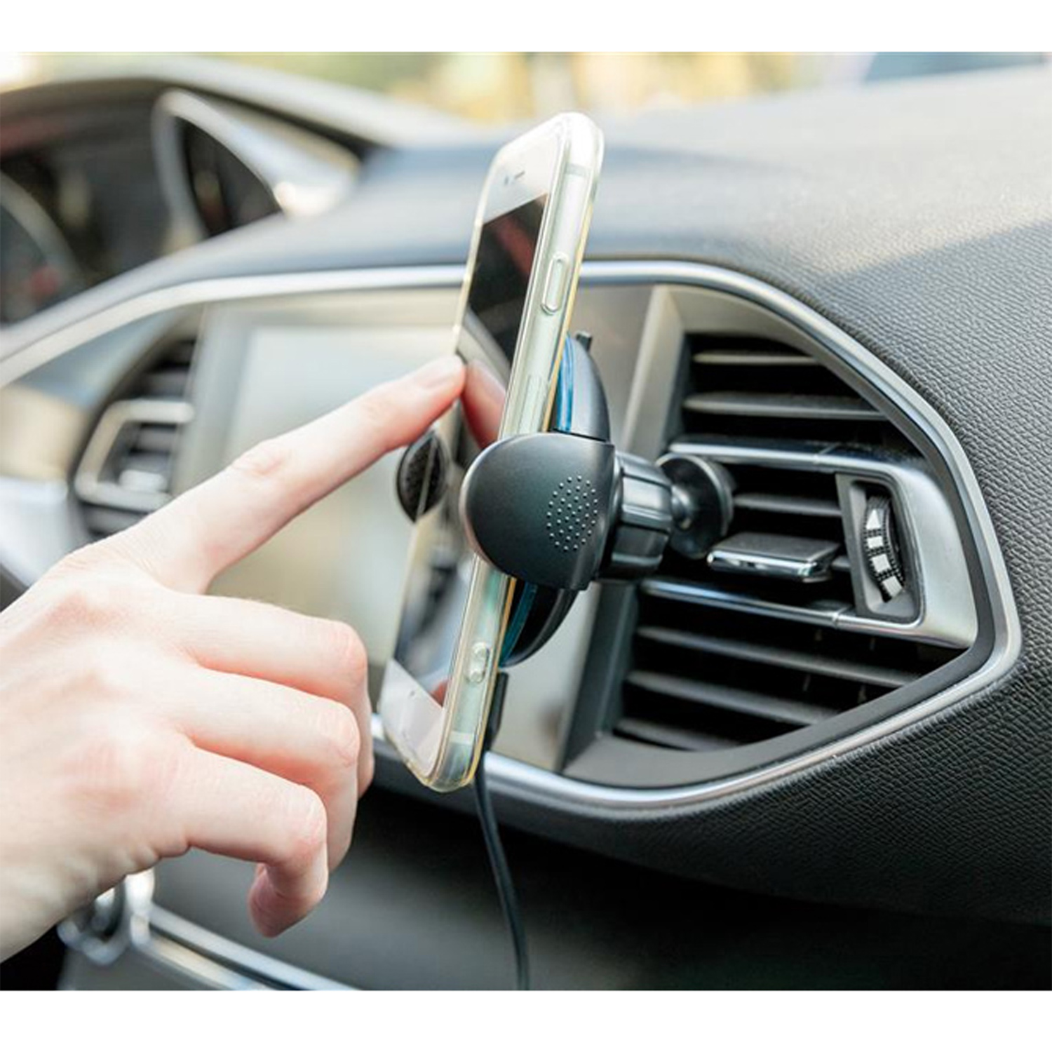 Mit diesem hochmodernem Autoladegerät können Sie Ihre ganze Aufmerksamkeit der Straße schenken, während Ihr Smartphone kabellos geladen wird. Im Lieferumfang ist sowohl eine Halterung für die Lüftungsauslässe als auch für das Armaturenbrett enthalten. Zwei Halterungen an der Seite halten das Smartphone (bis zu 6”) während der Fahrt sicher an seinem Platz. Eingebaute LED Indikatoren informieren den Nutzer wenn das Smartphone vollständig geladen ist. Um das Autoladegerät zu nutzen, verbinden Sie ganz einfach das micro USB Kabel mit dem USB Output Ihres Autos oder mit Ihrem USB Hub (nicht enthalten). Wireless Charging ist kompatibel mit Android der letzten Generation, iPhone 8, 8S und X. Input: 5V 1A. Wireless Output: Output: 5V/1A 5W.