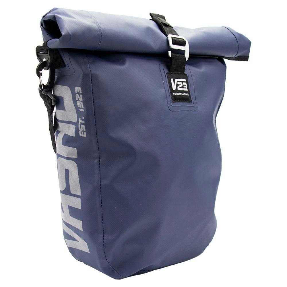 Diese robuste Fahrradtasche (± 20L) ist dank der getapten & verschweißten Nähte und des praktischen Rollverschlusses absolut wasserdicht. Perfekt für alle, die mit dem Fahrrad zum Sport, zur Arbeit oder zur Schule fahren. Die Tasche hat eine robuste Rückwand und lässt sich leicht am Gepäckträger befestigen. Dank des abnehmbaren Schultergurts können Sie sie auch bequem über der Schulter tragen. In der gepolsterten Hülle mit praktischer Extra-Reißverschlusstasche können Sie Ihren Laptop oder Ihr Tablet sicher verstauen. Der Futterstoff ist aus recycelten PET hergestellt. Die großen reflektierenden Aufdrucke machen Sie auch bei Nacht besonders gut sichtbar.
