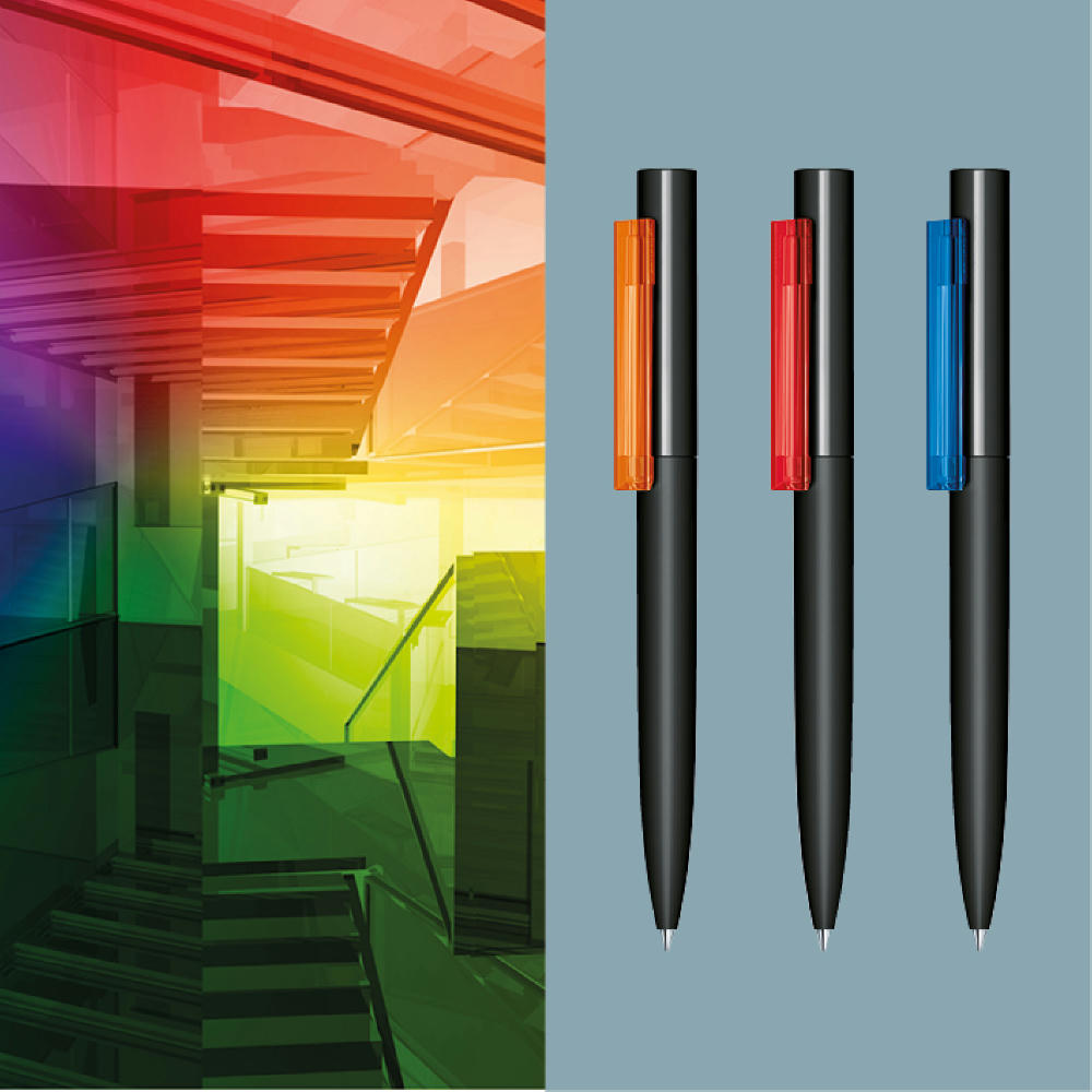 Drehkugelschreiber „senator® Headliner Soft Touch“ – geradlinig und originell. - Der „Headliner Soft Touch“ zeigt sich mit einer hochwertigen Soft Touch-Lackierung in Schwarz, die sich samtweich anfühlt und besonders griffig in der Hand liegt. Ein transparenter, farbiger Clip sorgt für einen modernen Kontrast und macht das klare, geradlinige Design zu einem Blickfang. - Die senator® magic flow G2 Mine (1,0 mm) sorgt für bis zu 5.000 Meter Schreiblänge – präzise und flüssig. - Der Kugelschreiber ist Made in Germany und steht für höchste Qualität, Langlebigkeit und Zuverlässigkeit. Eine kostenlose Ersatzmine verlängert die Nutzungsdauer zusätzlich.
